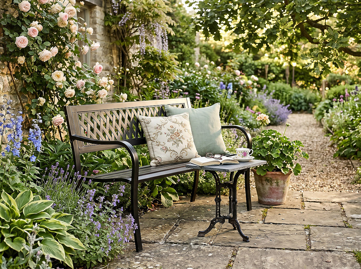 ✅Univerzalnost dizajna: Klasičen vzorec zagotavlja, da se klop odlično prilega različnim ureditvam zunanjih prostorov.