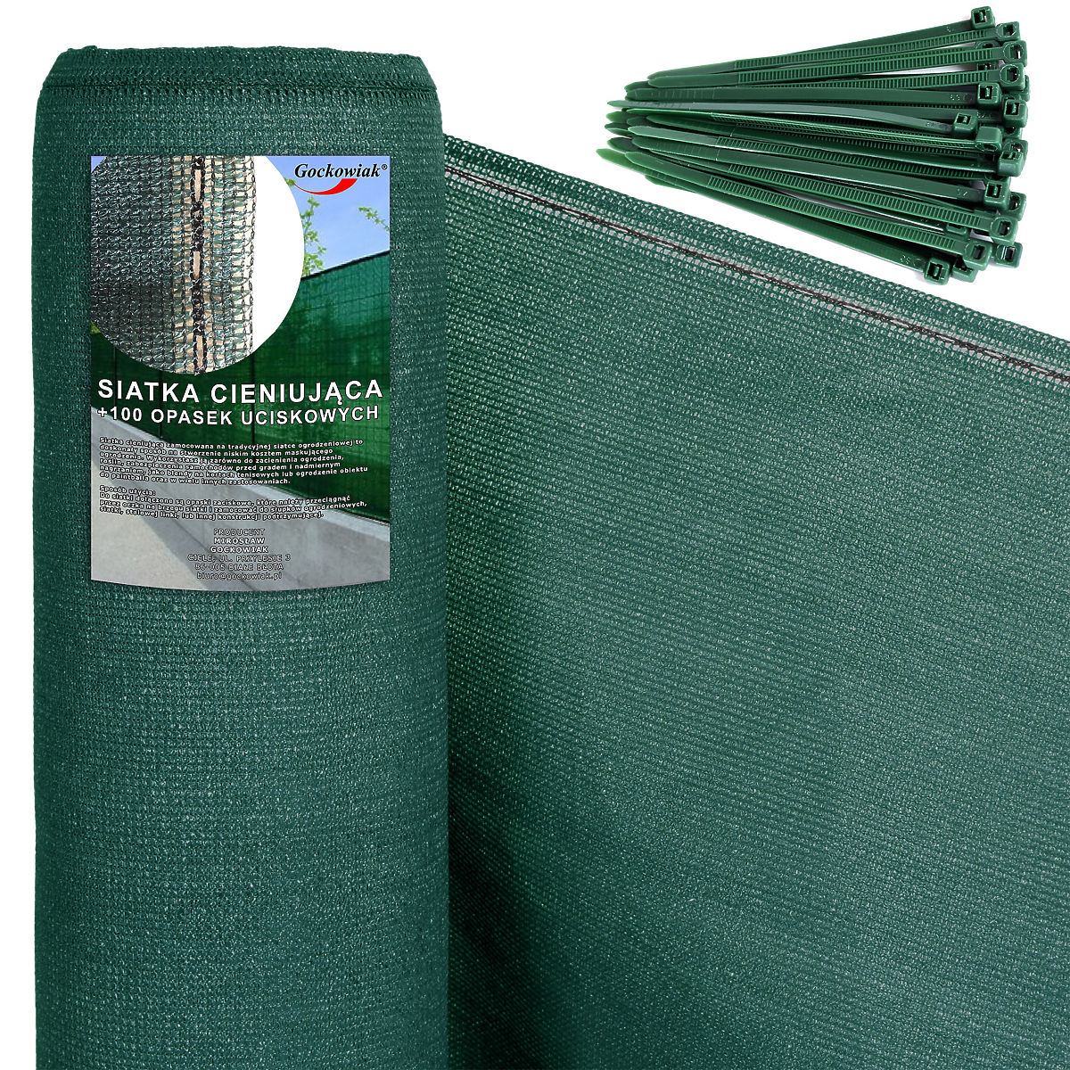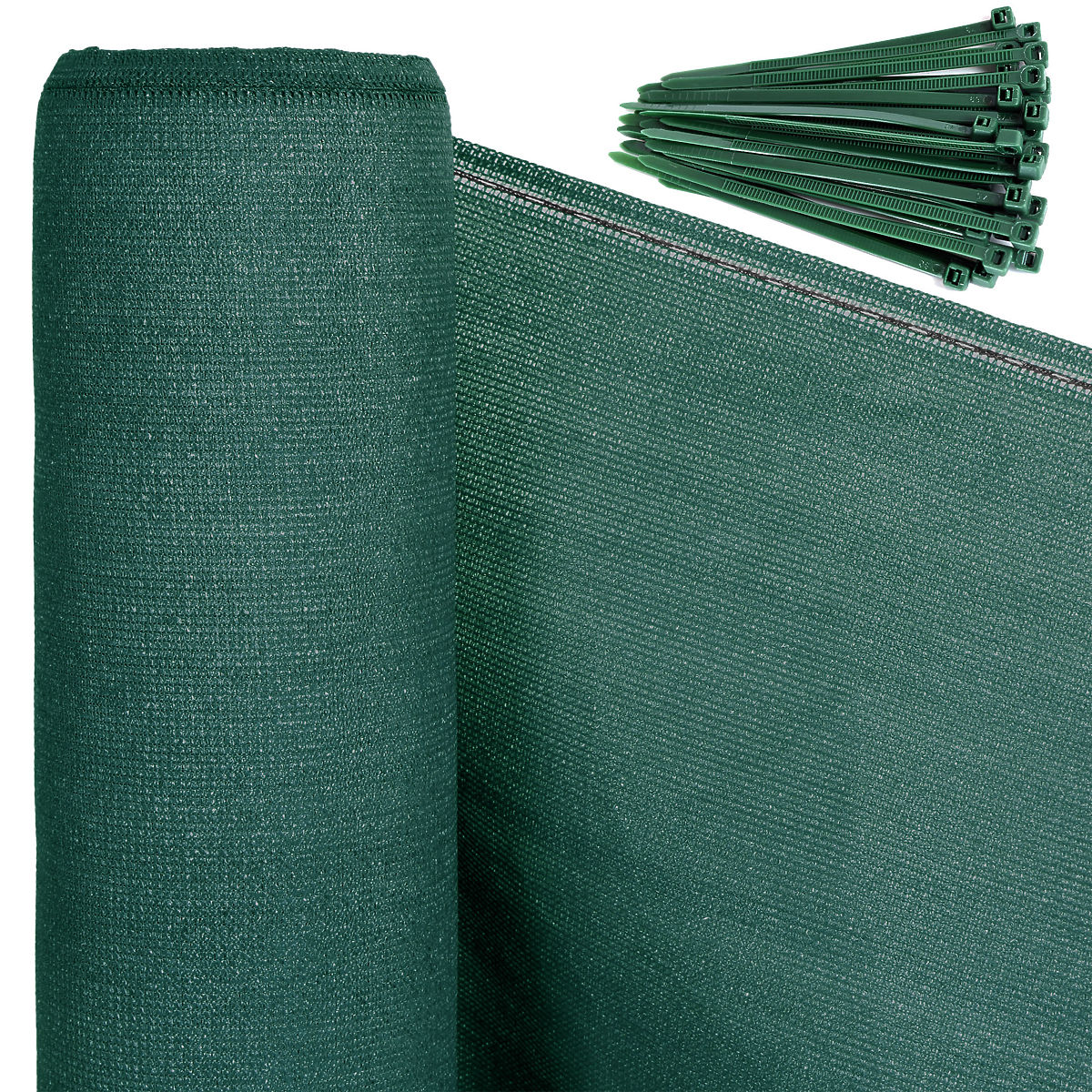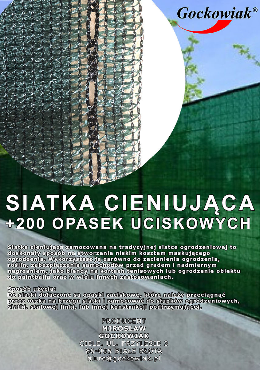 Senčilna mreža je odličen način za ustvarjanje maskirne ograje z nizkimi stroški. Njena glavna naloga je omejiti vidljivost in dostop svetlobe ob hkratnem ohranjanju ustreznega prezračevanja. Mreža je gosto pletena, izdelana iz najkakovostnejših materialov HDPE in PP. Vsebuje UV filter, ki krepi in podaljšuje njeno življenjsko dobo. Zmanjšuje do 90 % sončne svetlobe. Različica z ojačitvijo v obliki polipropilenskih šivov blizu montažnih očes. V paketu je 200 kosov zateznih trakov. Mreža je zložena v kompaktne dimenzije za prevoz.