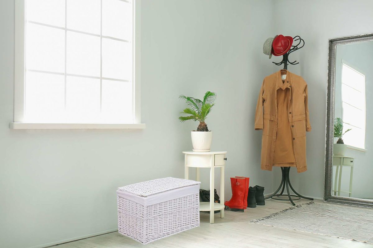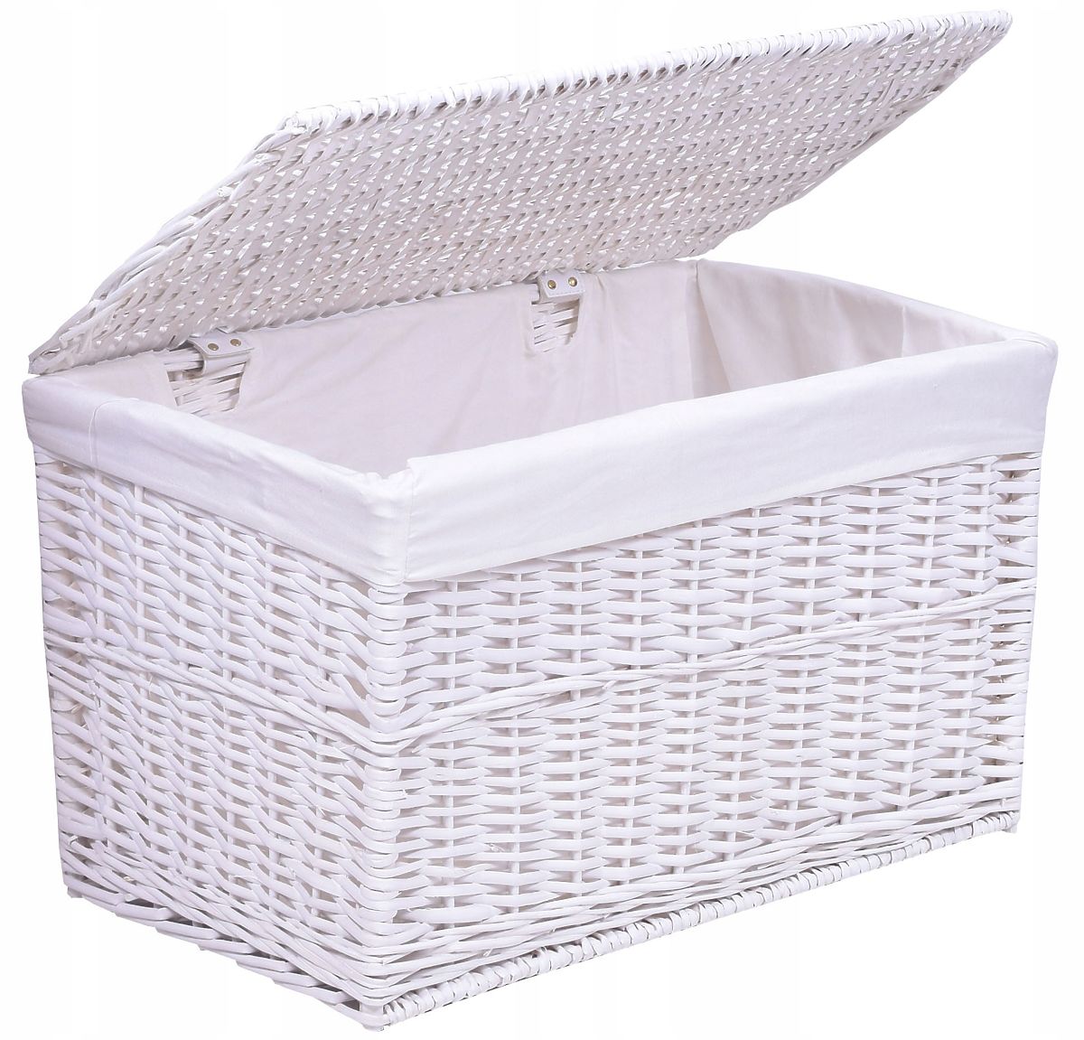 Pletena skrinja je idealna za kopalnico in druge prostore, kot so spalnice, dnevne sobe in sobe. Je zelo lep dodatek, ki dekoriranim prostorom dodaja značaj. Izdelek je estetsko izdelan iz pletenja in notranjost je zaključena z laneno oblogo. Pokrov ima elastične trakove, ki služijo kot tečaji.