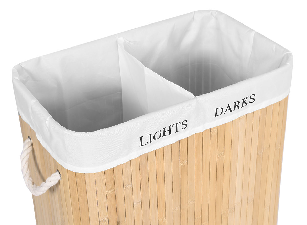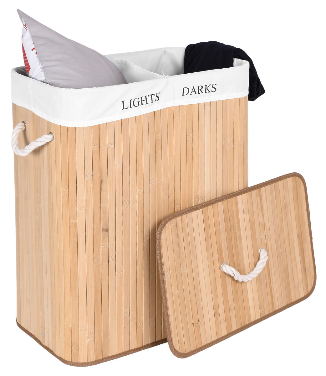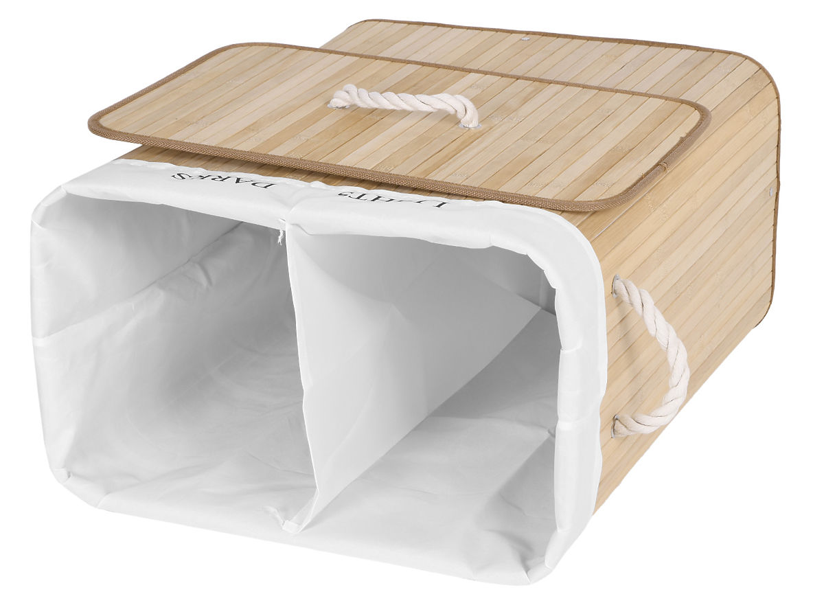 Bambusova košara za perilo z 2 predelki naravna Kapaciteta: 100 litrov | Barve: Naravna