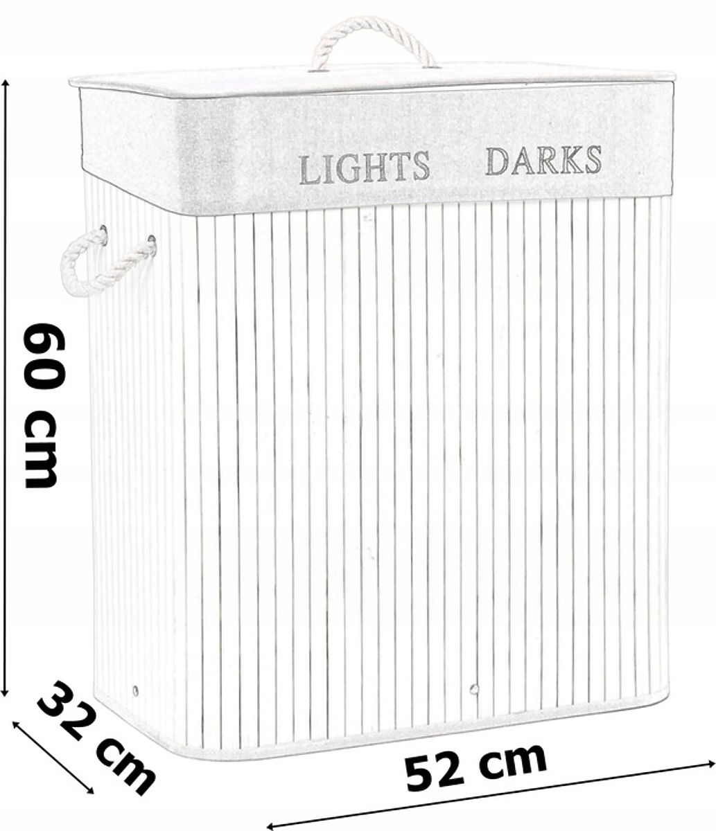 Najlepša in najbolj trpežna, stilna košara za perilo s kapaciteto 100 litrov. Izdelana iz naravnega bambusa. V notranjosti je tekstilna vreča s praktično pregrado za svetlo in temno perilo. Enostavna konstrukcija, trdna struktura. Skrije neprijetne vonjave. Omogoča udobno in hitro pranje.