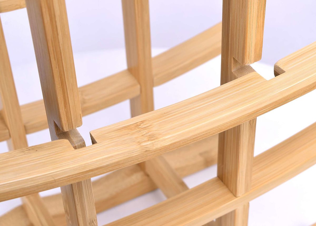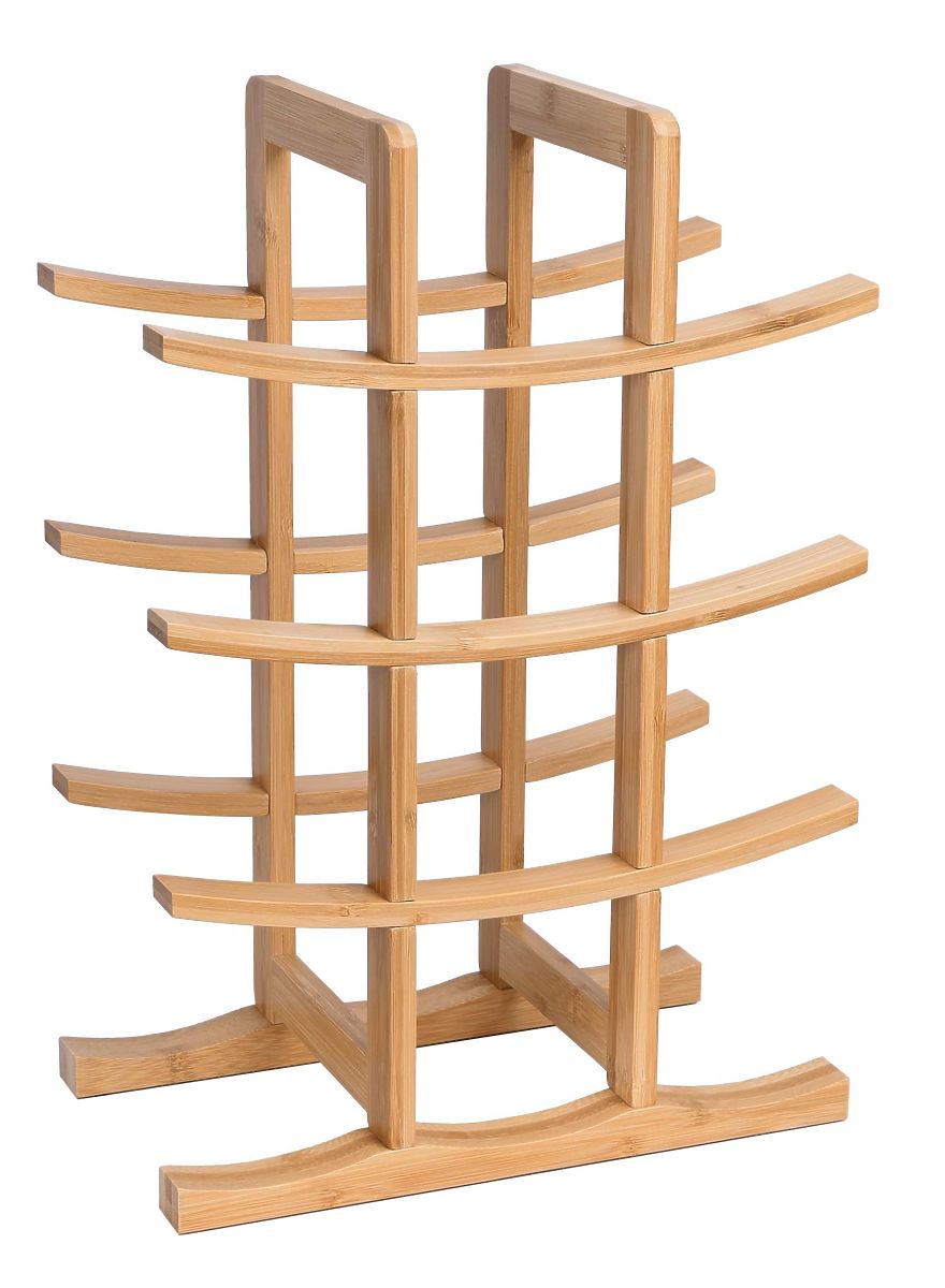 To visokokakovostno stojalo za vino, izdelano iz bambusovega lesa, lahko sprejme do 12 steklenic vina. Ergonomsko - zavzame malo prostora, a sprejme res veliko. Stojalo izstopa predvsem zaradi svoje naravnosti in rahlo azijskega dizajna. Zaradi dveh stranskih delov in ukrivljenih prečnih opornikov spominja na japonska vrata in pritegne pozornost. Zaradi odpornosti na vlago je stojalo za steklenice primerno tudi za kuhinjo. 4 blazinice iz mehke gume zagotavljajo varno postavitev in hkrati ščitijo površino pred neprivlačnimi praskami. Stojalo zagotavlja idealno shranjevanje steklenic vina - zamaški se ne izsušijo.