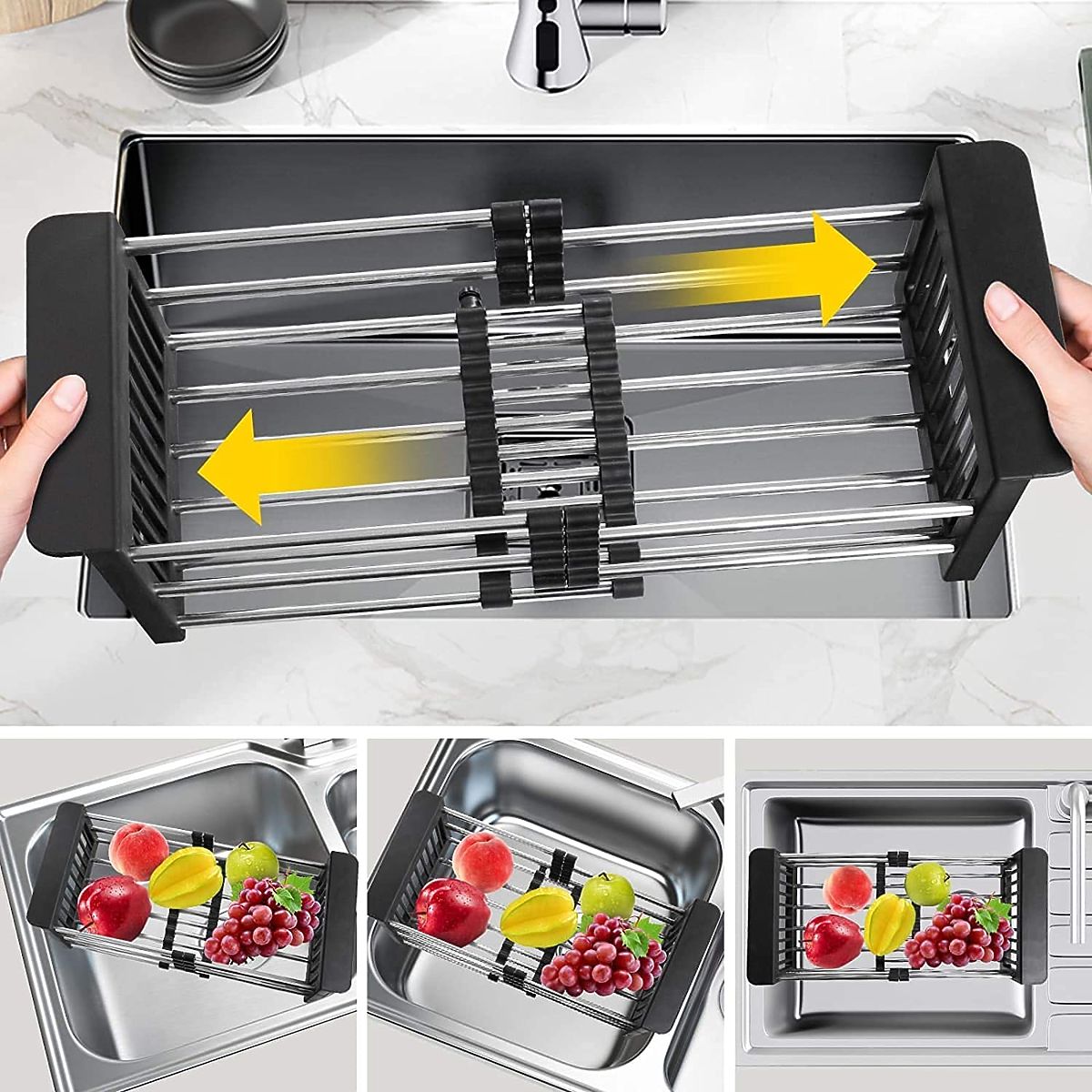 Praktična in univerzalna odkapna košara za zelenjavo in sadje. Izdelana iz trdne plastike in nerjavečega jekla. Odporna proti koroziji in zelo trpežna. Teleskopska konstrukcija omogoča prilagoditev zahtevani velikosti pomivalnega korita. Košara je nastavljiva v razponu od 28 cm do 43 cm.