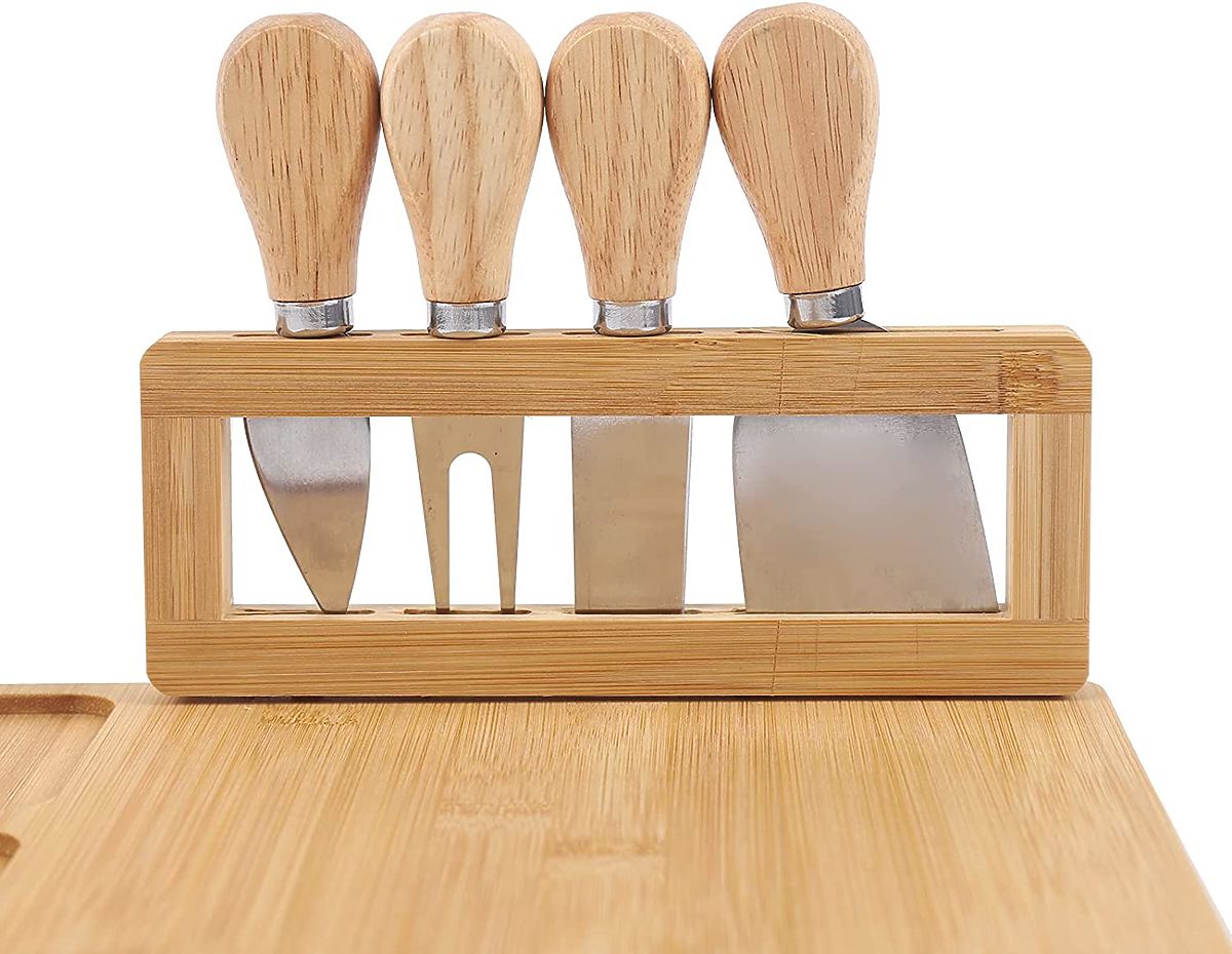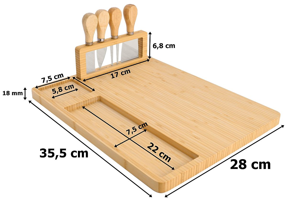 Vključuje: deska + komplet pribora iz nerjavečega jekla na stojalu