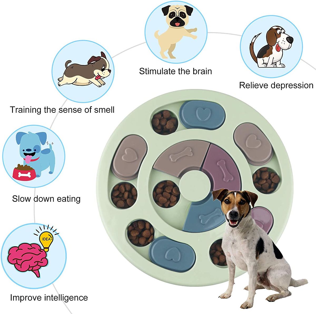 Izobraževalne puzzle za psa so enostavne za vzdrževanje in shranjevanje. Prav tako so idealna igrača za pse, ki potrebujejo dodatno stimulacijo za zmanjšanje tesnobe in dolgočasja. Interaktivne puzzle so najboljša igrača za vašega psa, ki mu bo pomagala razvijati voh in mu prinesla veliko veselja in zabave.