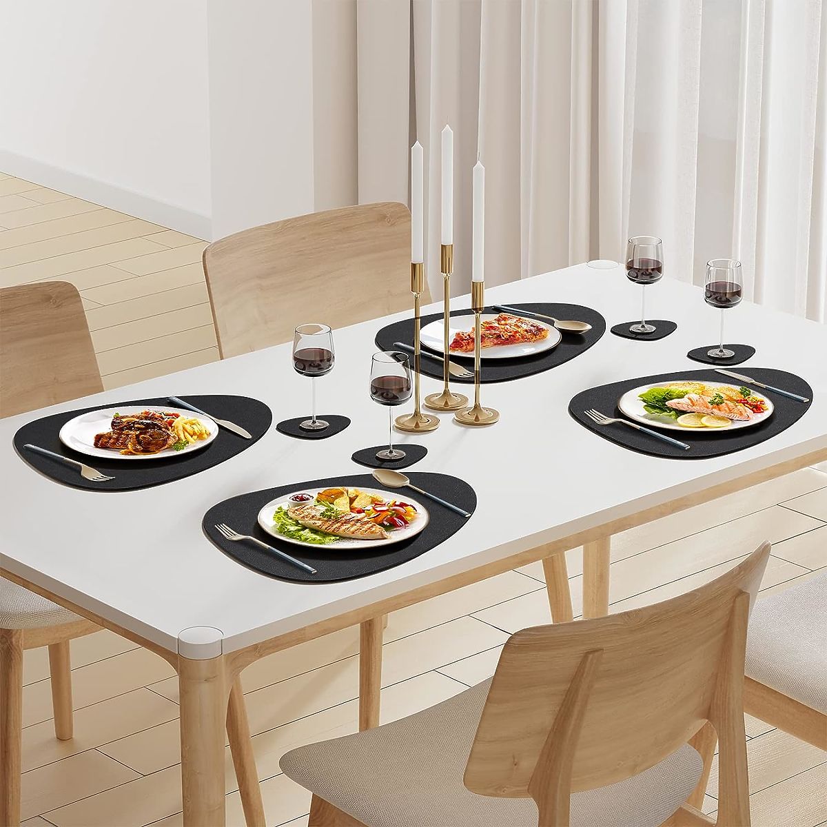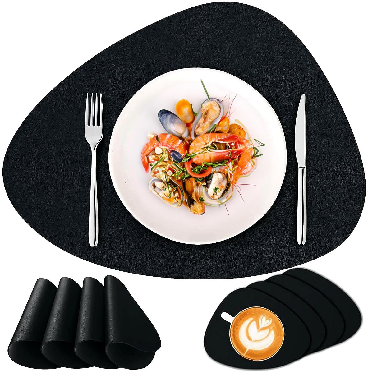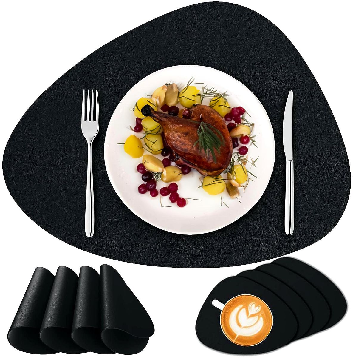 ✅ Univerzalnost: Zaradi svoje vsestranskosti se lahko podloge iz materiala uporabljajo tako vsakodnevno kot ob posebnih priložnostih, dodajajo vsakemu obroku in srečanju poseben značaj. Njihova črna barva se dobro ujema z vsakim interierjem.