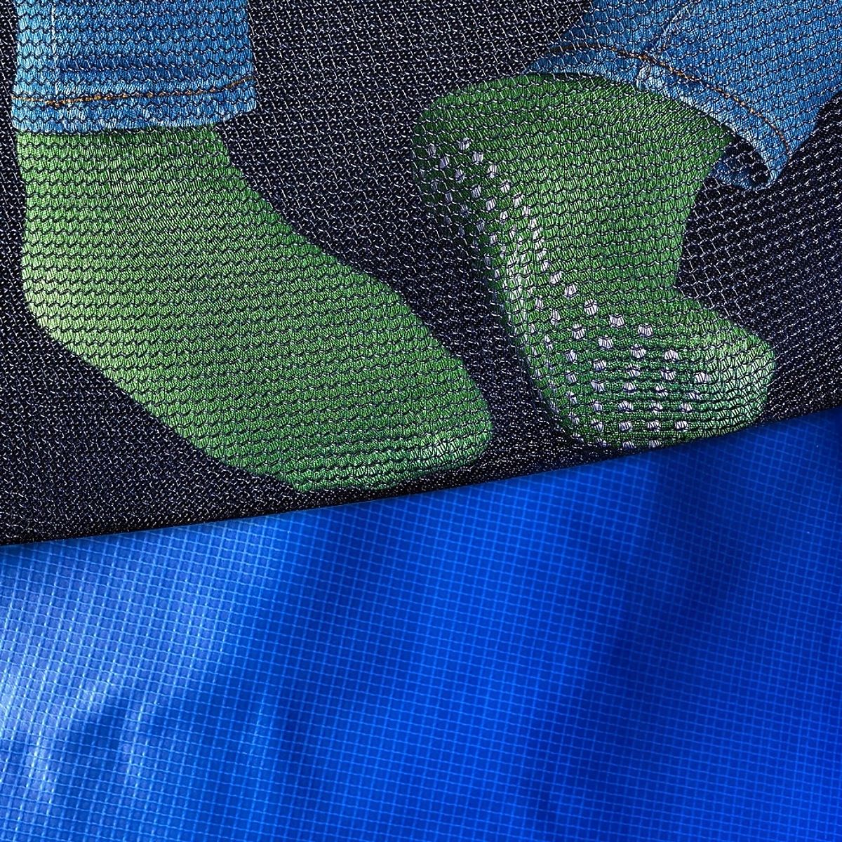Material skakalne podloge: PP (polipropilen) z gramaturami 275g/m2 - za udobje in varnost pri skakanju.