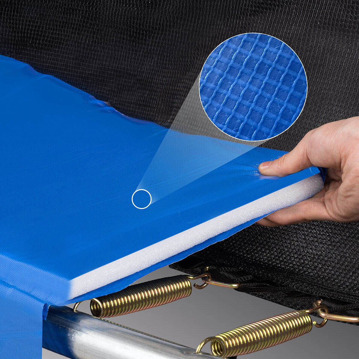 ✔️Močna elastična podloga - glavna podloga je izdelana iz trdne in elastične plastike z visoko gramaturami 275g/m2, kar naredi skakanje na trampolinu varno in udobno.