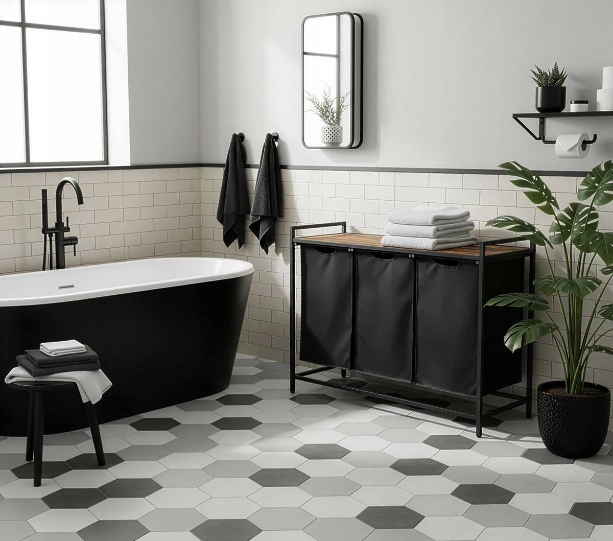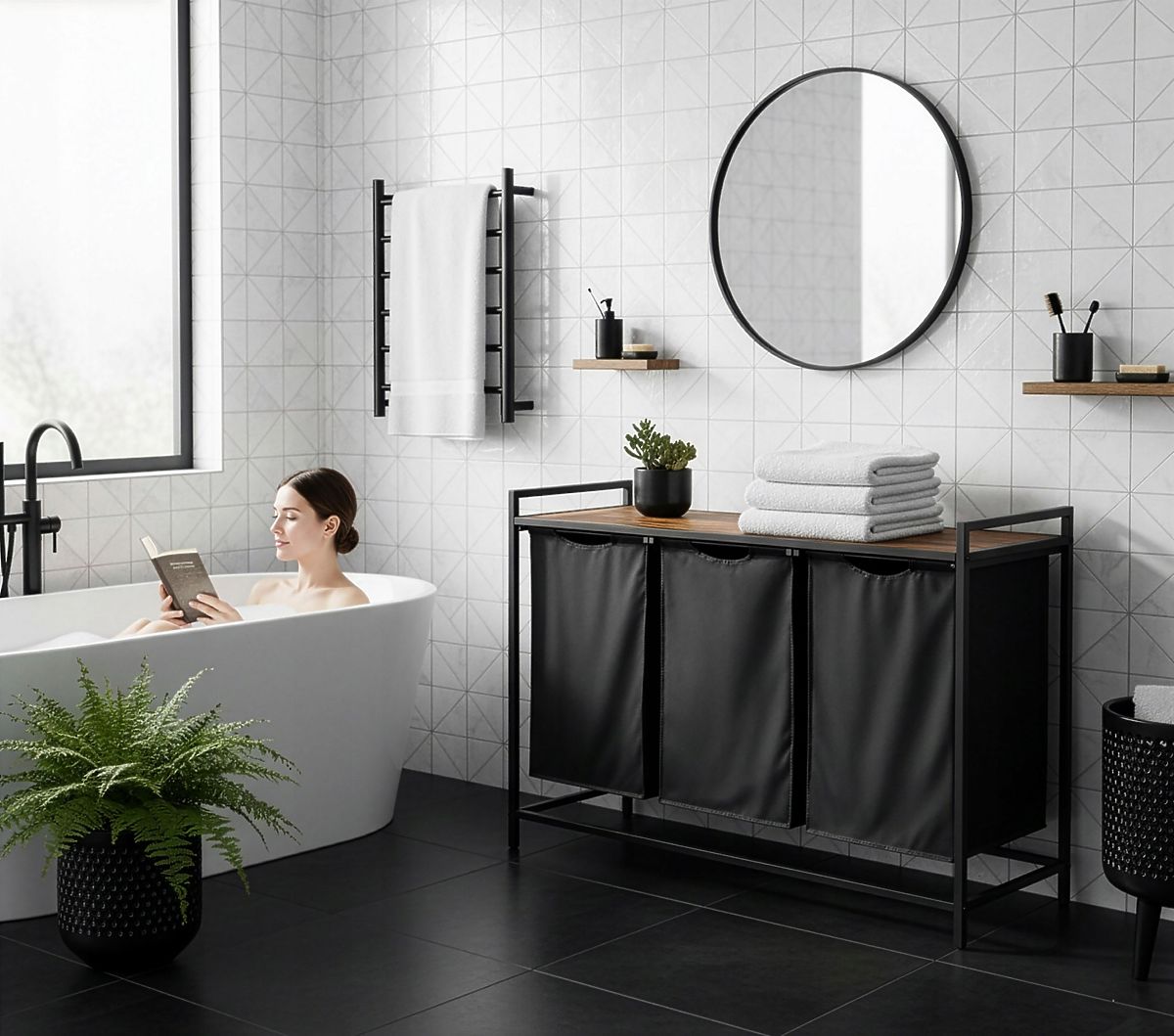 Trojna košara za perilo Artus je odličen izbor za tiste, ki cenijo red in funkcionalnost v kopalniškem prostoru. Njegov loft, industrijski dizajn se odlično prilega modernim interierjem, ponujajoč maksimalno udobje in prihranek prostora. Trije ločeni predelki omogočajo natančno ločevanje perila, kar olajša organizacijo vsakodnevnih opravil. Poleg tega je praktična polica nad košarami idealen prostor za brisače in kopalniške dodatke. S košaro Artus ne boste le obogatili estetike svoje kopalnice, temveč tudi povečali njeno funkcionalnost.