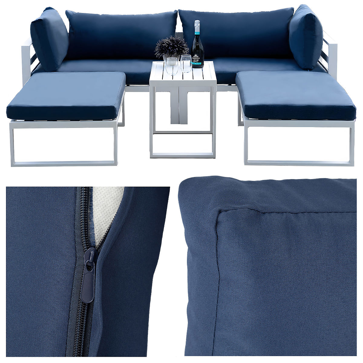 Komplet vrtnega pohištva Santo v beli barvi je idealna rešitev za tiste, ki želijo uživati udobje in stil na svežem zraku. Zaradi modularne konstrukcije lahko prilagodite razporeditev pohištva svojim potrebam in ustvarite idealen prostor za sprostitev ali srečanje z družino in prijatelji. Visoka kakovost materialov, kot je prašno lakiran aluminij, zagotavlja trpežnost in enostavno vzdrževanje. Odstranljive prevleke olajšajo čiščenje, možnost izravnave nog in pritrditev modulov pa zagotavlja stabilnost in udobje pri uporabi. Z izbiro kompleta Santo pridobite ne le eleganten videz, temveč tudi funkcionalnost in trpežnost, ki bodo izpolnile vsa vaša pričakovanja.