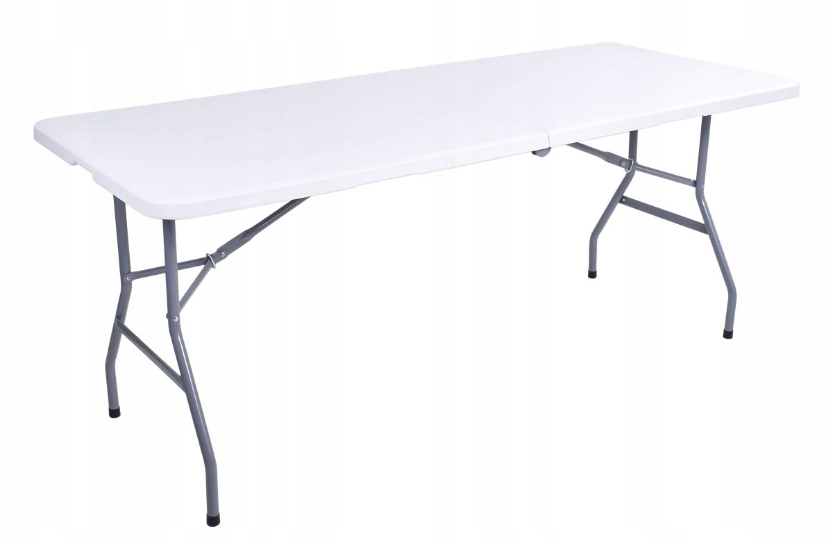 Catering set, ki vključuje zložljivo mizo dolžine 180 cm in 6 zložljivih stolov, je odličen za različne dogodke. Jeklena konstrukcija s prašnim premazom zagotavlja visoko stabilnost, plošča iz trpežnega HDPE materiala pa je odporna na vremenske vplive. Stoli so izdelani iz materialov, kot so jeklo, PVC, MDF, pena in ekousnje. Tako miza kot stoli so enostavno prenosljivi, miza pa je dodatno opremljena z udobnim ročajem. Nedrseče noge na nogah zagotavljajo stabilnost seta.
