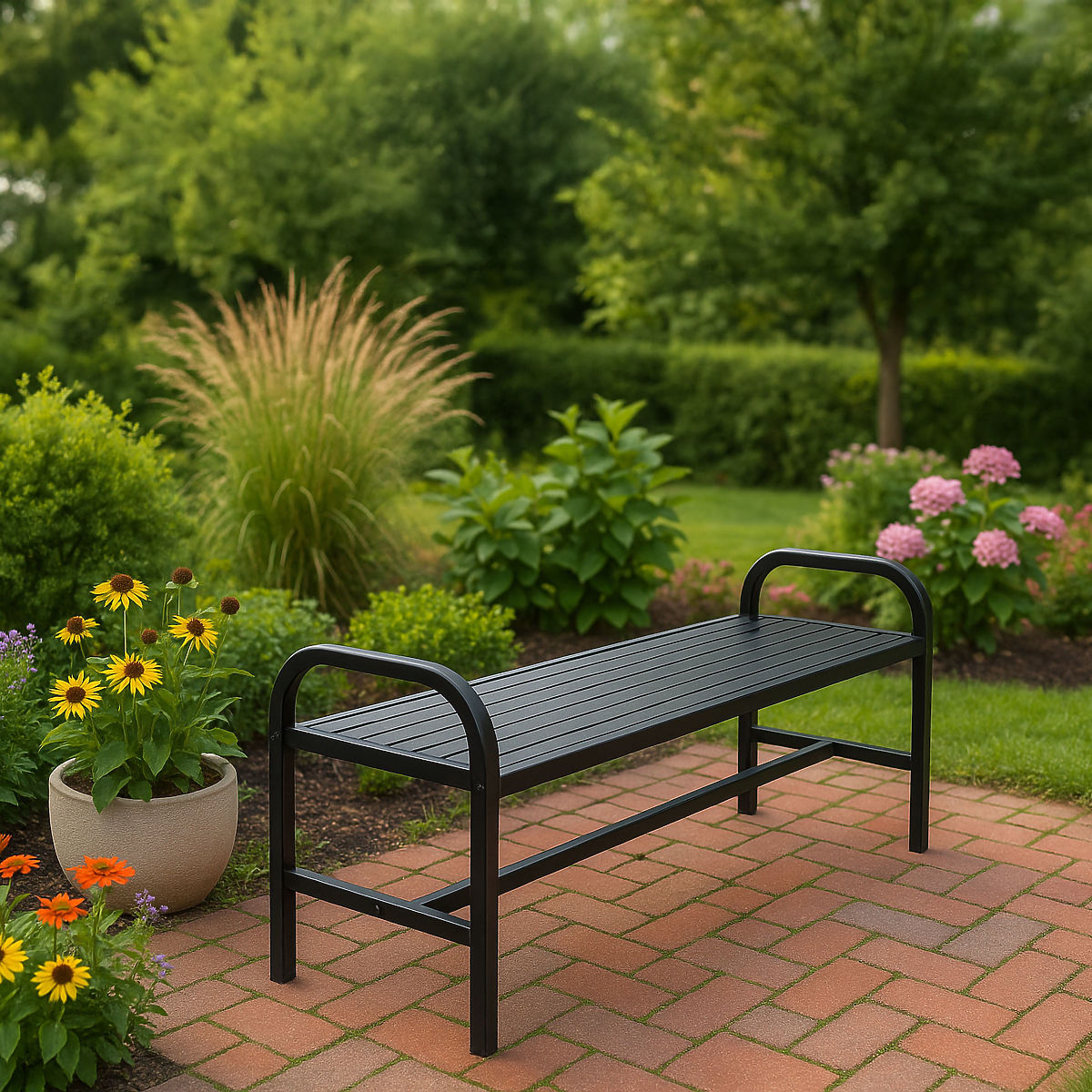 Črna klop Sobo je sodobna in trpežna rešitev za vsak zunanji prostor – odlično se prilega vrtu, terasi in balkonu. Izdelana iz trdnega prašno lakiranega jekla in trpežnih plastičnih letev, ki posnemajo les, združuje eleganten videz z izjemno vzdržljivostjo. Stabilna konstrukcija in enostavna montaža jo naredita za idealno izbiro za dolga leta.