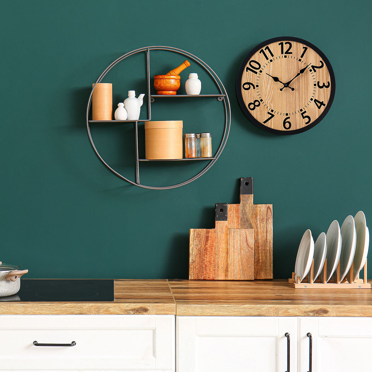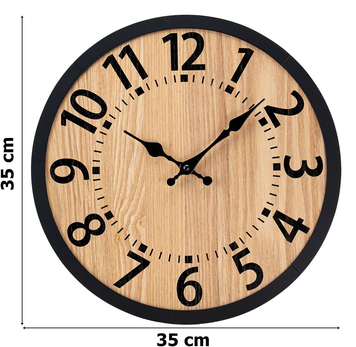 Stenska ura Abbas s premerom 35 cm je kombinacija naravnega lesa in minimalističnega dizajna, ki prinaša toplino in stil v vsak interier. Zahvaljujoč tihemu delovanju mehanizma ne moti miru, izrazite številke in kovinske kazalke pa olajšajo branje časa na daljavo. Te ure niso le praktičen pripomoček, temveč tudi učinkovita dekoracija.
