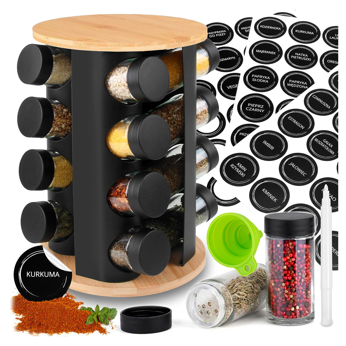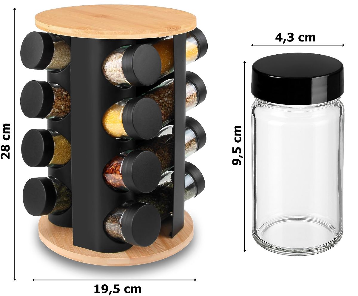 Vrtljivi stojalo za začimbe ROMERO 16 kozarcev + 72 nalepk