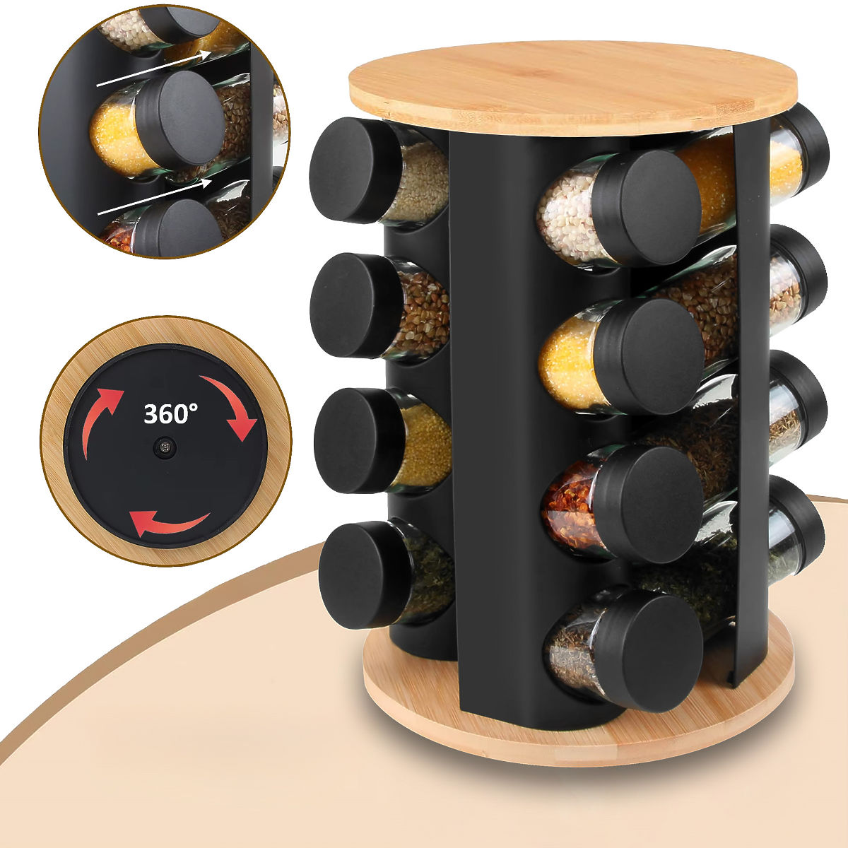 ✨Stojalo za začimbe Romero - Praktičen in vrtljiv organizator s 16 posodami!✨