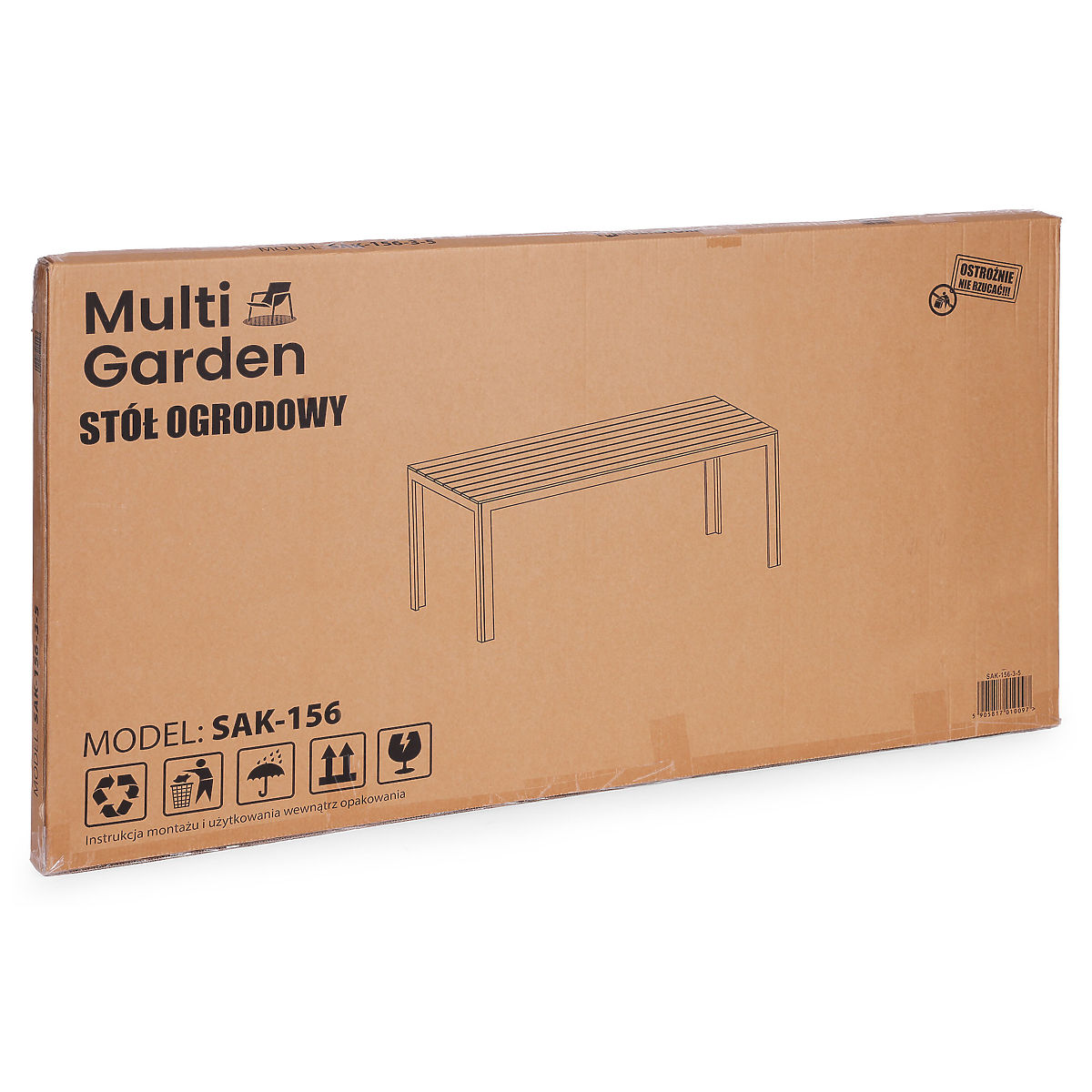 Vrtna miza blagovne znamke MultiGarden je odlična za teraso ali vrt, saj ustvarja udoben prostor za skupno sprostitev na svežem zraku. Je idealen prostor za družinska kosila, vikend žar in večerne pogovore ob kavi. Velika površina plošče omogoča prosto razporeditev posode, prigrizkov in dekoracij, tako da zlahka organizirate udoben prostor za srečanja. Univerzalni slog omogoča modelu, da se harmonično vključi tako v moderne kot klasične vrtne ureditve.