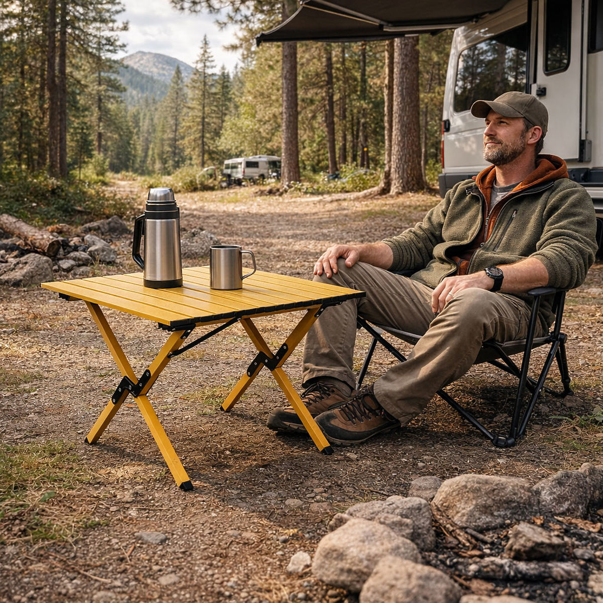 Turistična miza MultiGarden je praktična rešitev ustvarjena z mislijo na počitek na svežem zraku. Odlično služi pri kampiranju, taborjenju, izletih, piknikih ali žaru na vrtu, saj nudi udoben prostor za uživanje obrokov, pripravo prigrizkov ali postavitev pijač in turističnih dodatkov. Zaradi svoje mobilne konstrukcije je mizo enostavno vzeti s seboj na jezero, vrt, v gozd ali na plažo. Je tudi odličen dodatek za sprostitveno cono na vrtu ali terasi, ko potrebujete lahek in funkcionalen pohištveni kos, ki ga hitro postavite kjerkoli.