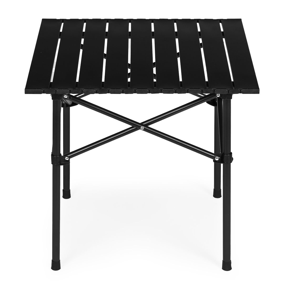 OKREPLJENA KONSTRUKCIJA MIZEKonstrukcija izdelana iz ogljikovega jekla zagotavlja trajnost in odpornost proti vsakodnevni uporabi na terenu. Ta material dobro prenaša obremenitve in zagotavlja trdno oporo plošči. Križna struktura okvirja dodatno krepi celoto in pomaga enakomerno porazdeliti težo. Zaradi tega miza ostaja stabilna pri uporabi na različnih površinah, kot so trava, zemlja ali terasa.
