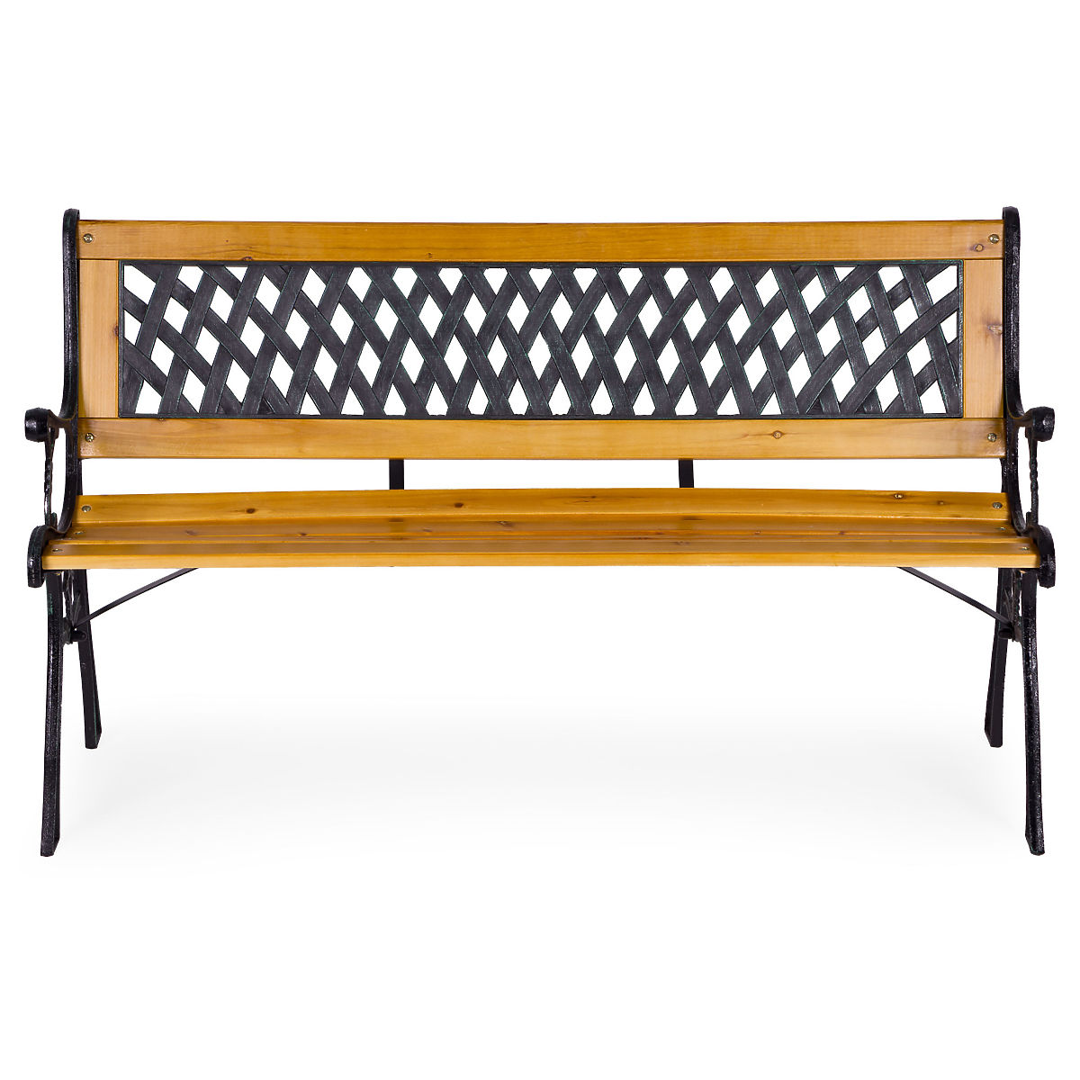 Lukahome.si » Vrtno pohištvo / Vrtna klop / Lesena vrtna klop 126x51 cm z mrežastim naslonjalom in litoželeznimi nogami parkovna MultiGarden