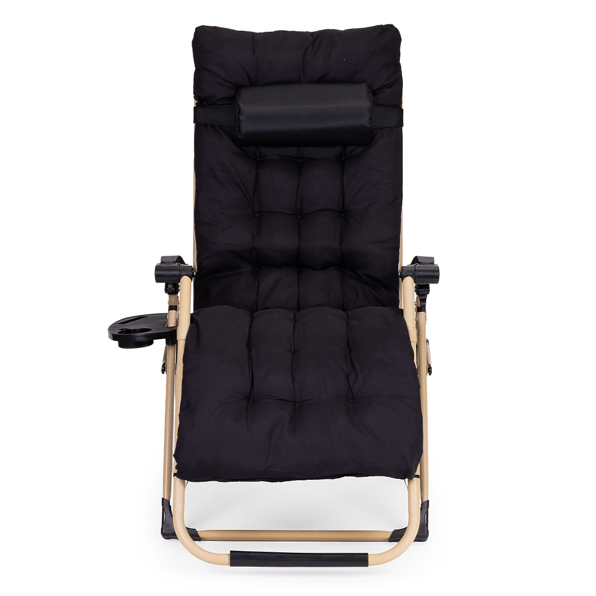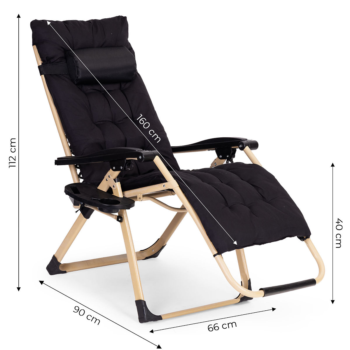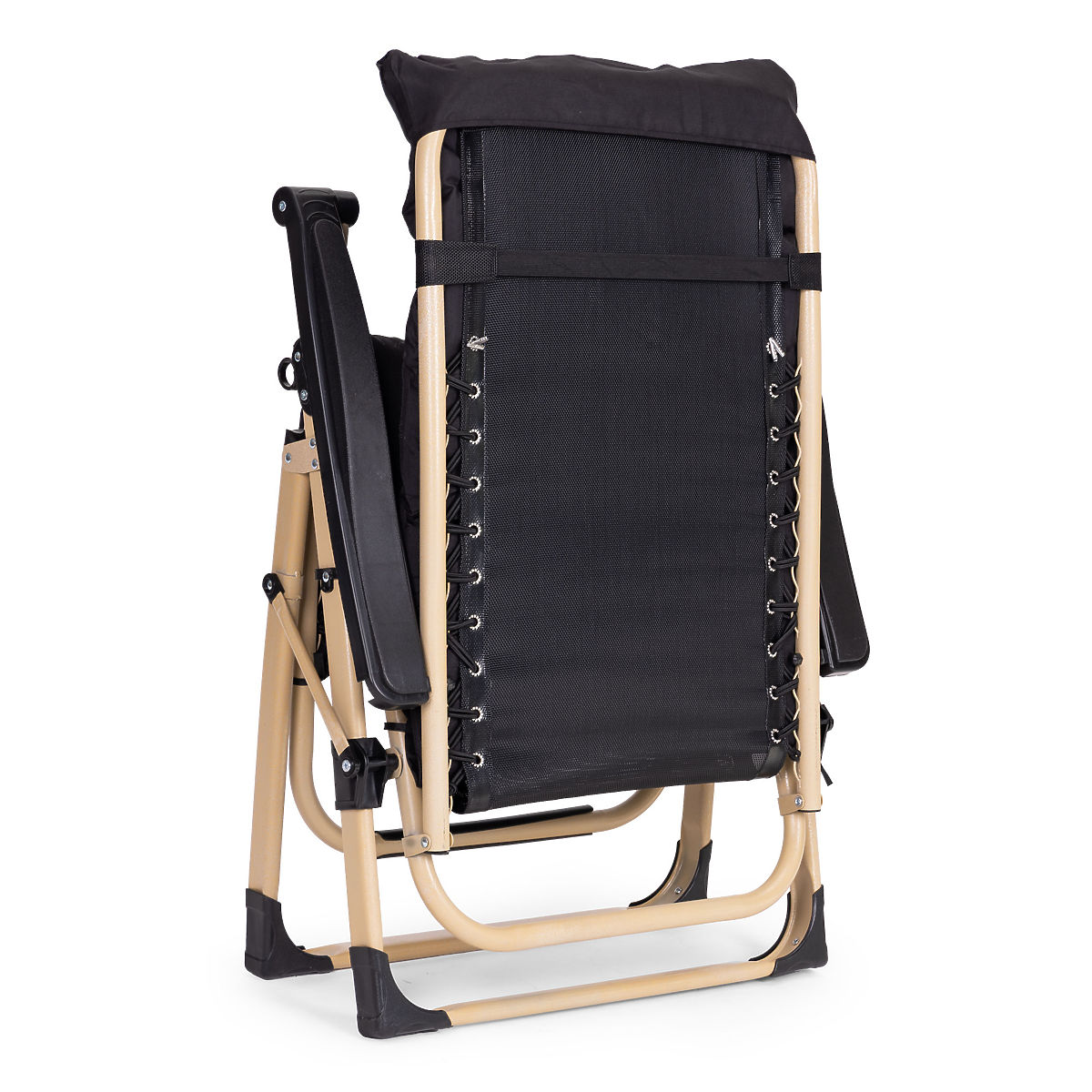 Lukahome.si » Vrtno pohištvo / Vrtni ležalniki / Vrtni ležalnik s črno blazino in nastavljivim naslonjalom, zlati okvir MultiGarden