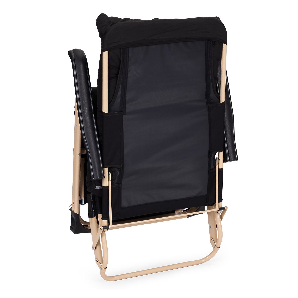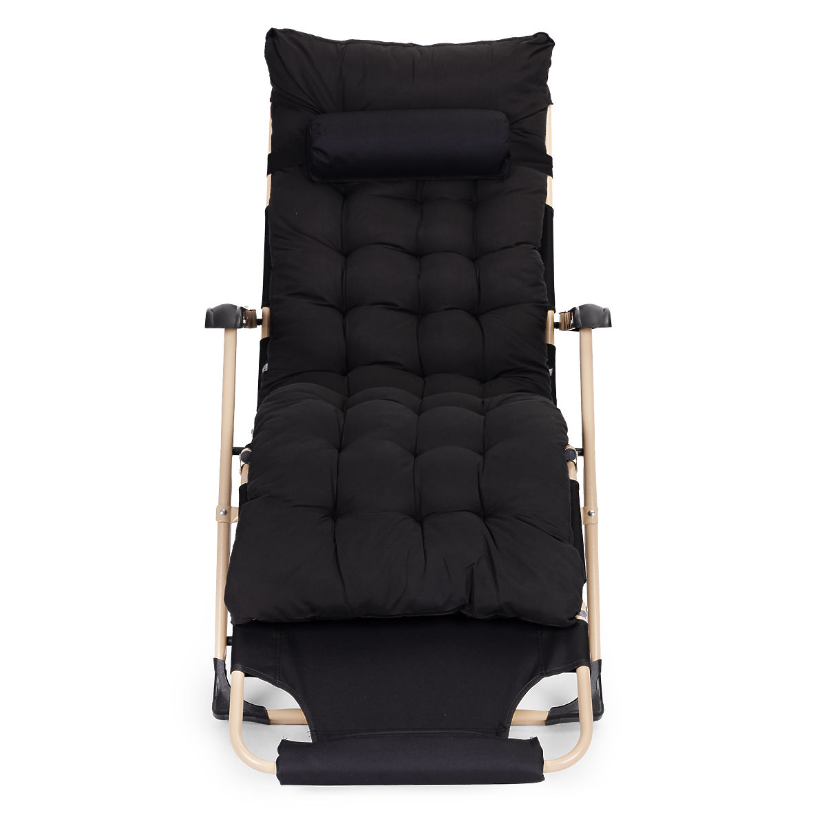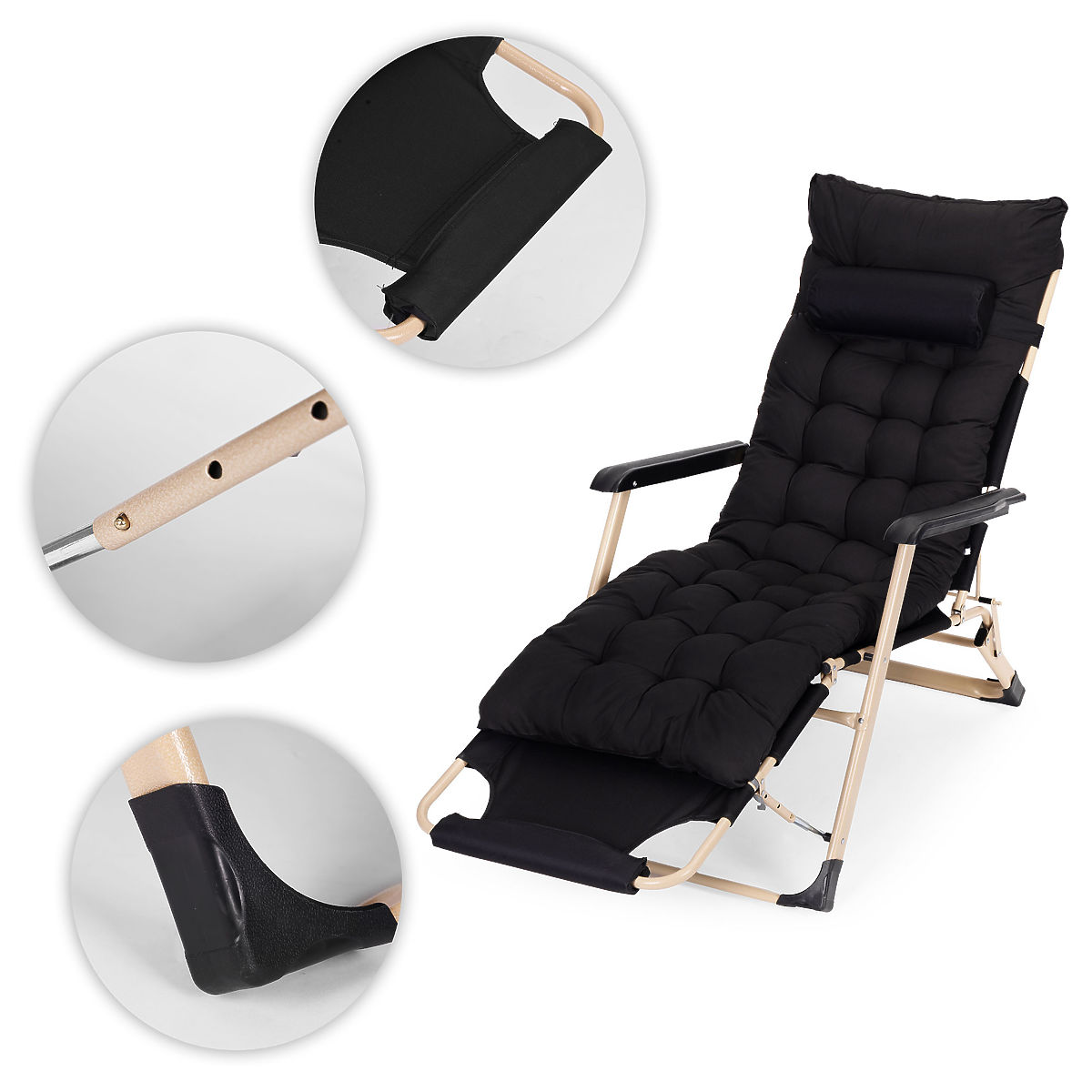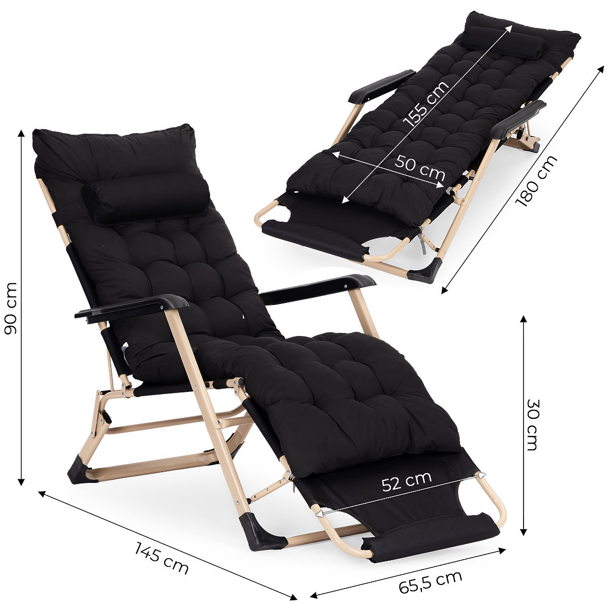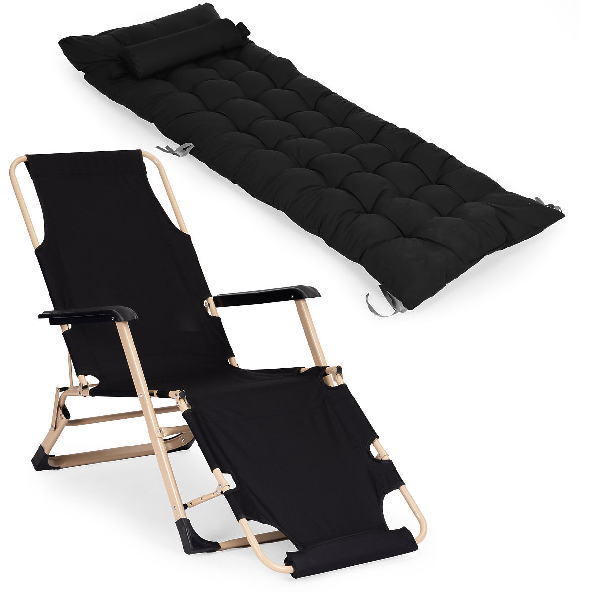 Lukahome.si » Vrtno pohištvo / Vrtni ležalniki / Vrtni plažni ležalnik 2v1 s blazino, nastavljivim naslonom za noge, črn, zlati okvir MultiGarden