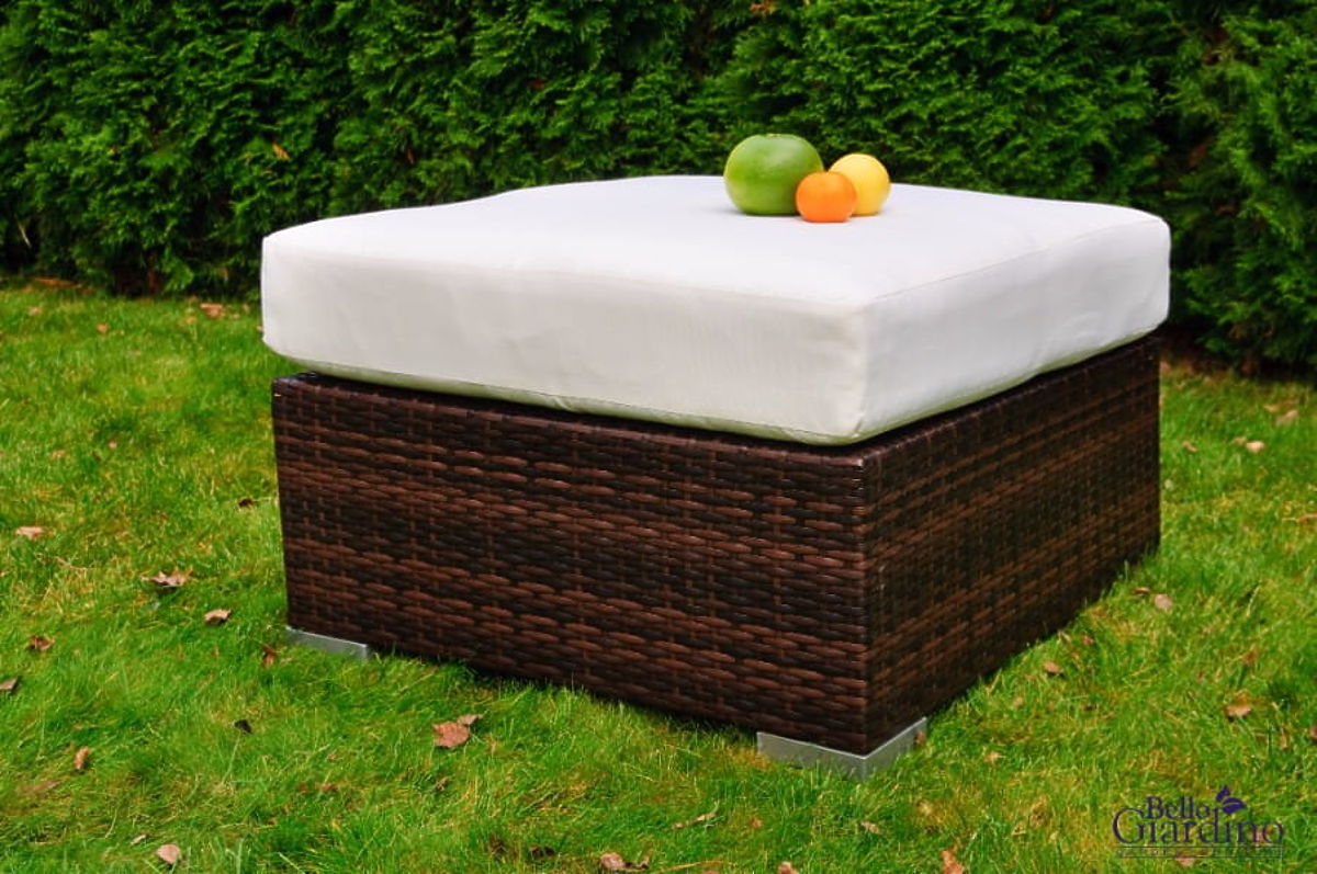 Izdelan iz visokokakovostnega sintetičnega ratana, se ta PUF popolnoma prilega vsaki vrtni, terasi ali balkonu. Sodobna zasnova in eleganca. Material, iz katerega je PUF izdelan, odlično prenaša spremenljive vremenske razmere - je odporen proti dežju, zmrzali in UV sevanju. Mehka blazina povečuje udobje počitka. PUF se odlično predstavlja kot samostojen kos pohištva, lahko pa se uporablja tudi za razširitev večmodularnih vrtnih kompletov Bello Giardino. Barva pufa: temno rjava, neenotna Pletenina: tehnoratan 7-8mm x 1,2mm, gladka struktura Konstrukcija: aluminij 1 x puf: dolžina: 70 cm širina: 70 cm višina: 30 cm Višina sedeža: 30 cm + 12 cm blazina. Puf je poslan v 1 kartonu dimenzij 72x72x42 cm, teža 10 kg Možnost šivanja blazine po naročilu: https://www.bg-meble.pl/pl/p/Usluga-Krawiecka-Poduszki-Na-Zamowienie-/742 Možnost šivanja prevleke za blazino po naročilu: https://www.bg-meble.pl/pl/p/Usluga-Krawiecka-Poszewki-Na-Zamowienie/743 Barva pufa: temno rjava, neenotna Pletenina: tehnoratan 7-8mm x 1,2mm, gladka struktura Konstrukcija: aluminij 1 x puf: dolžina: 70 cm širina: 70 cm višina: 30 cm Višina sedeža: 30 cm + 12 cm blazina. Da bi pohištvo čim dlje ohranilo svoj videz, priporočamo nakup zaščitne prevleke. Prevleka v temno sivi barvi je enodelna in ima spodaj zatezno vrvico, speljano skozi kovinska očesca. Vse prevleke so šivane po meri, čas izdelave je približno 14 delovnih dni.