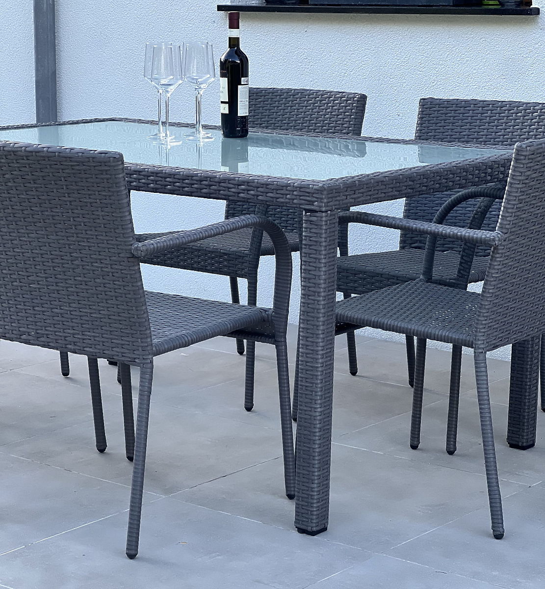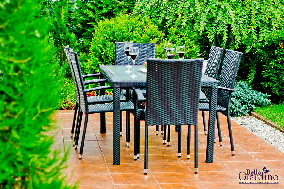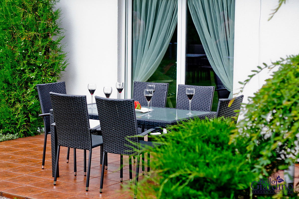 Vrtno pohištvo AVVICENTE je utelešenje elegance in funkcionalnosti, zasnovano za tiste, ki želijo v svoj vrt ali na teraso vnesti pridih luksuza, ne da bi morali žrtvovati praktičnost. Zaradi lahke konstrukcije mize ta komplet omogoča enostavno premikanje, kar omogoča hitro spreminjanje razporeditve zunanjega prostora glede na trenutne potrebe ali priložnosti. Izdelano iz kakovostnega sintetičnega ratana, vrtno pohištvo AVVICENTE ne zahteva zapletene nege in hkrati kljubuje neugodnim vplivom dežja, intenzivnega sončnega sevanja in mraza. Čudovit videz pohištva AVVICENTE, združen z udobnimi stoli in trpežnostjo materiala, ustvarja idealne pogoje za sprostitev na svežem zraku in zagotavlja udobno okolje za dolge poletne večere. Je odlična izbira za tiste, ki iščejo vrtno pohištvo iz tehno ratana, ki bo služilo dolga leta in hkrati ohranjalo estetiko in funkcionalnost. Barva kompleta AVVICENTE: črna – enotna, rahlo progasta struktura (miza in stoli se rahlo razlikujejo po strukturi pletenja – glej fotografije v galeriji izdelkov)