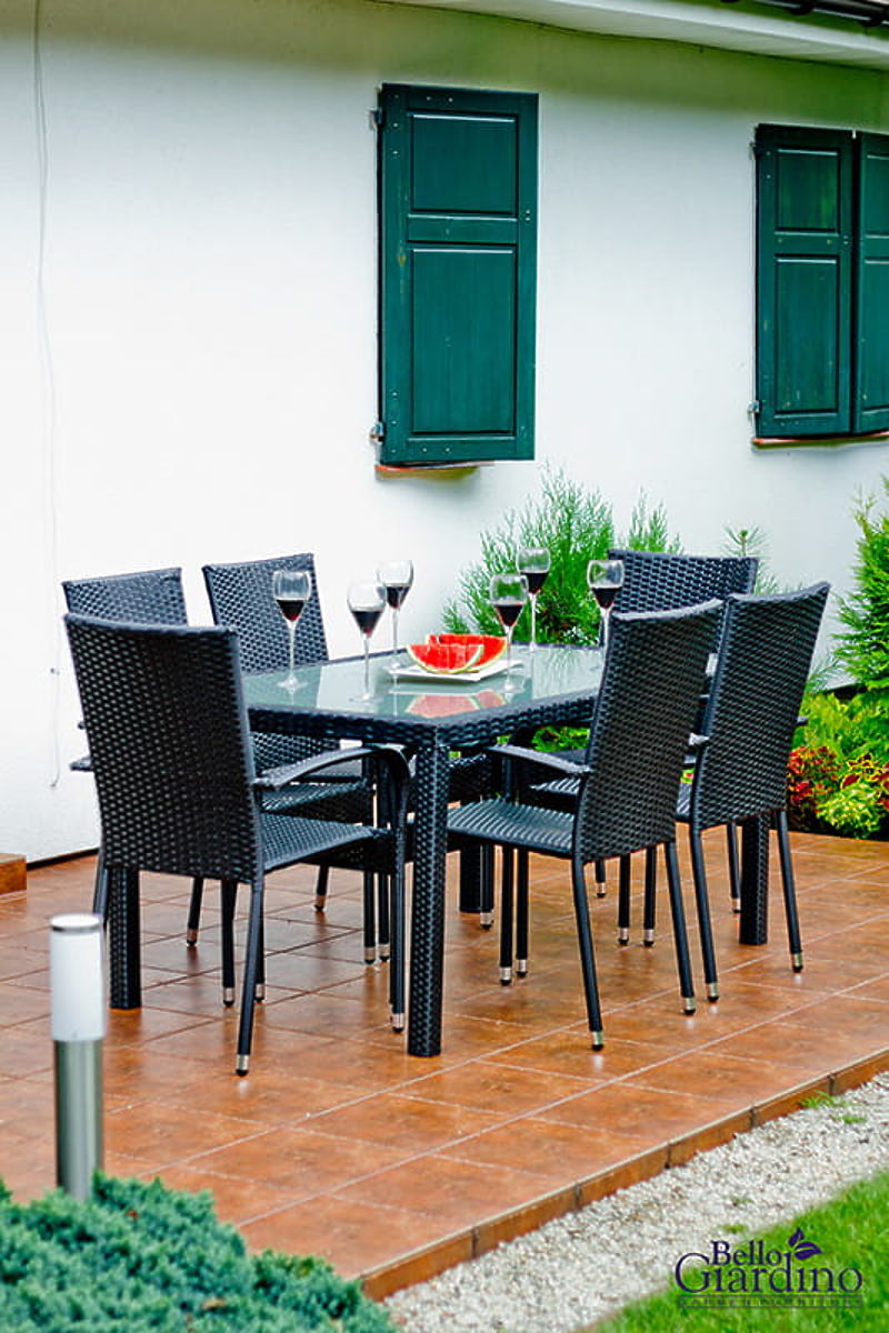 Lukahome.si » Vrtno pohištvo / Vrtni kompleti / Komplet jedilnega pohištva iz tehno ratana (miza 150×90 cm + 6 × stolov) AVVICENTE, črna