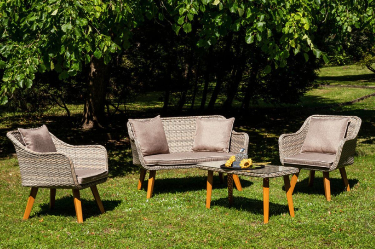 Eleganten vrtni set iz tehnoratana (2 x udoben stol, kavč + miza) LARGO siv neenoten