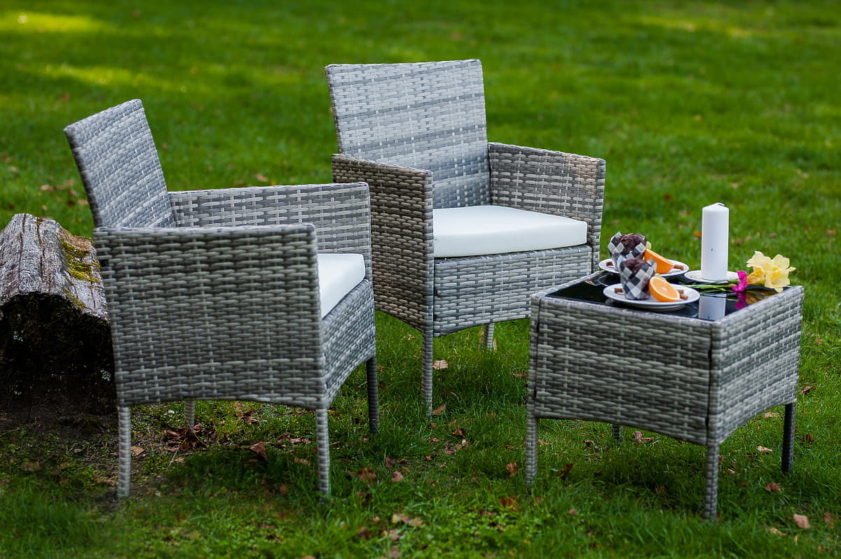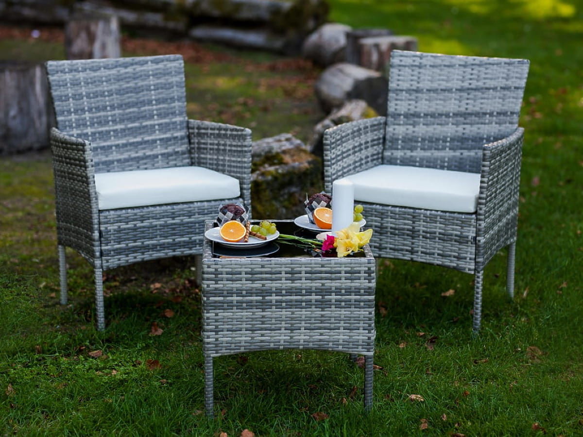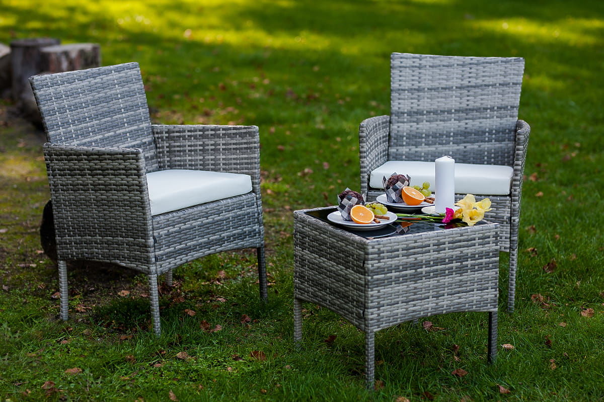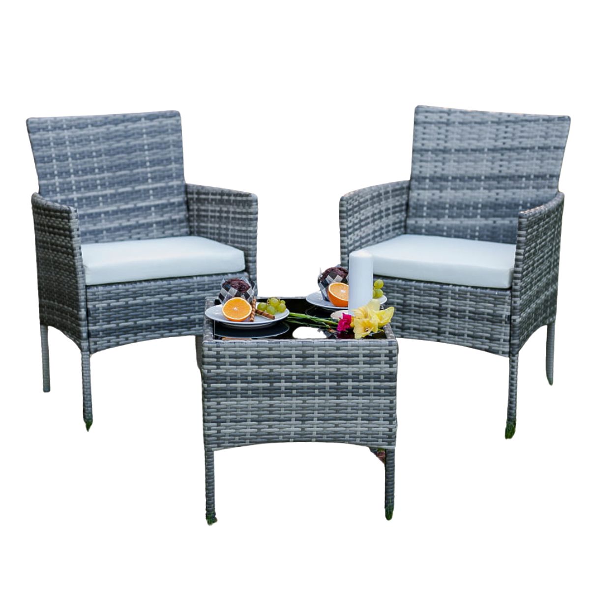 Komplet balkonskega pohištva (2 x stol + miza) SANO sivi tehno ratan