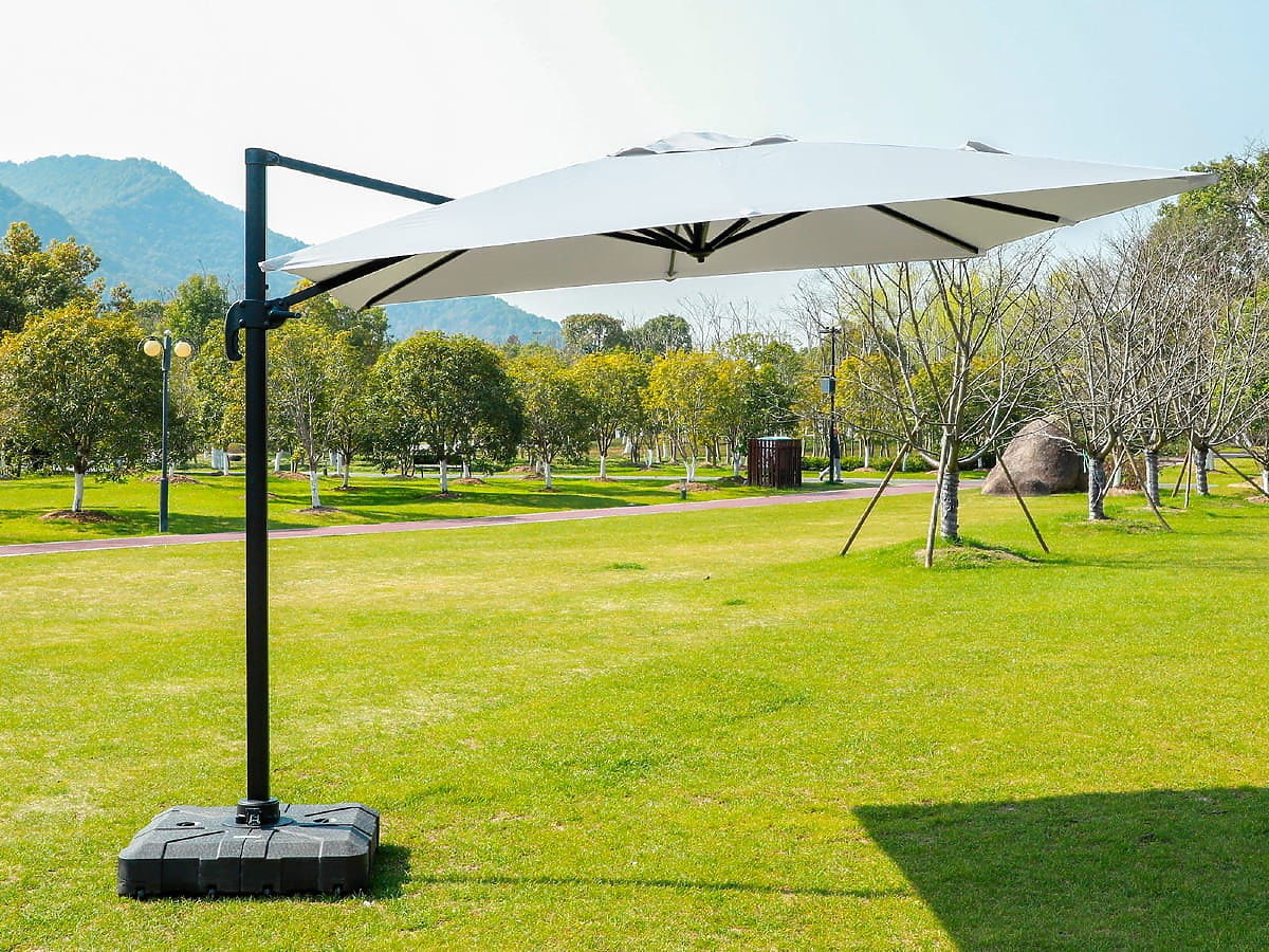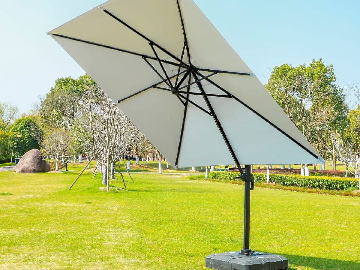 Velik kvadratni senčnik z aluminijasto konstrukcijo in ecru prevleko. .. več