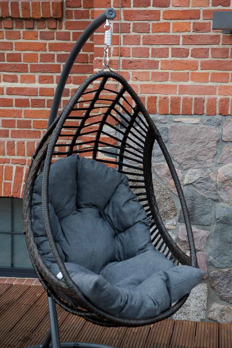 Viseči stol BELLISSIMO (Stol + okvir) iz sivega tehnoratana, prevleka BREZPLAČNO