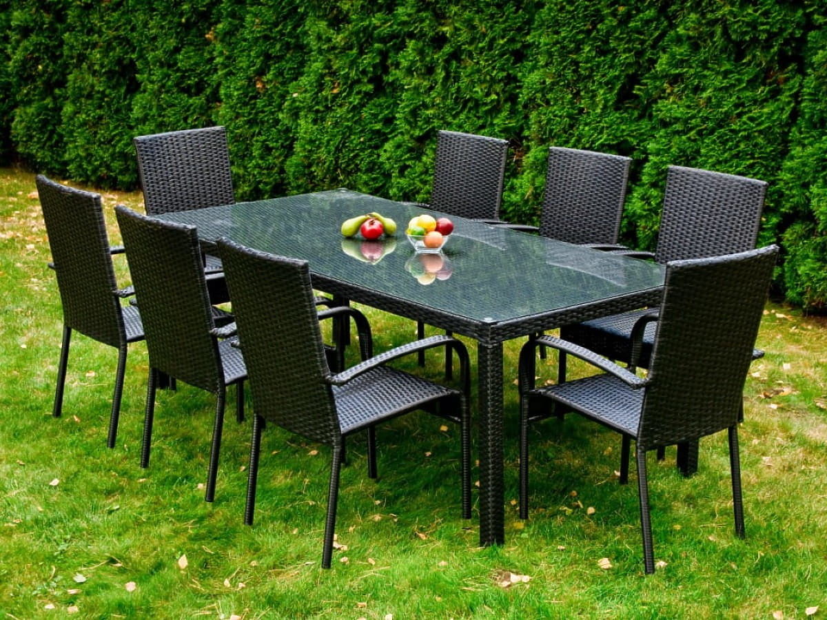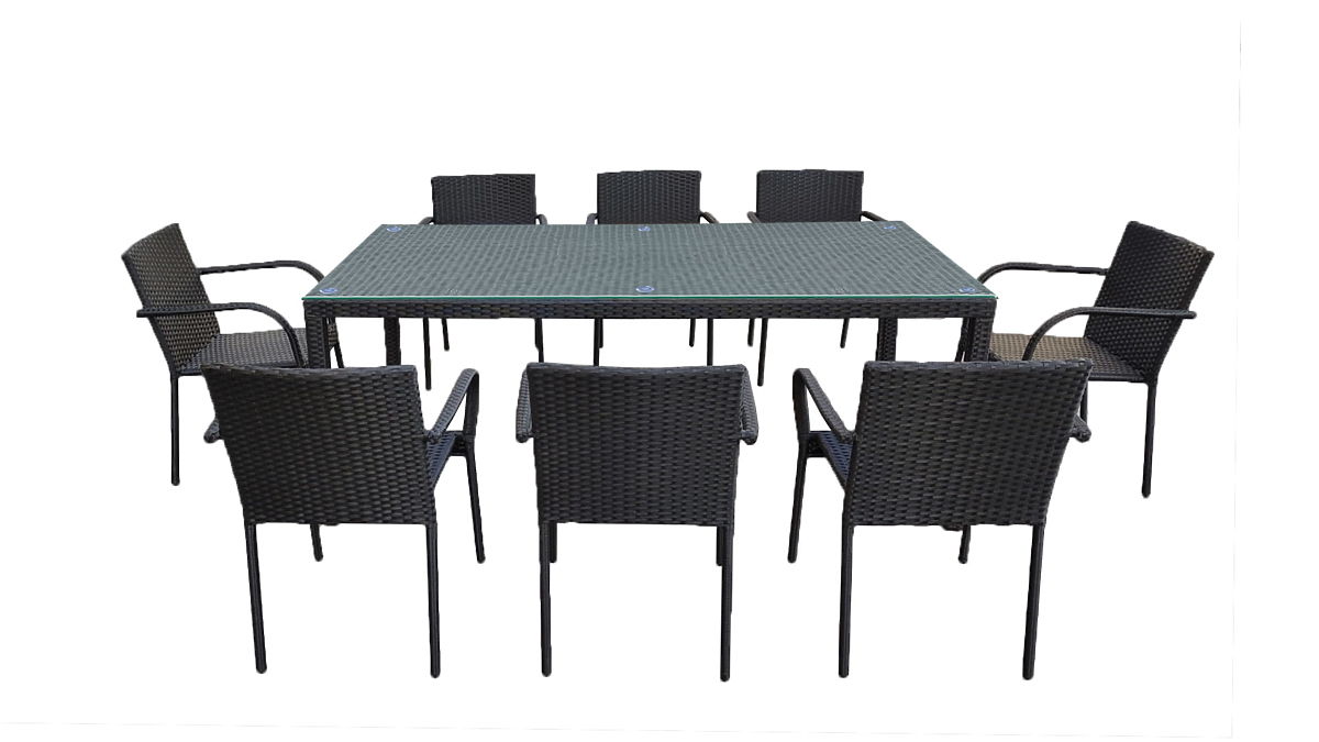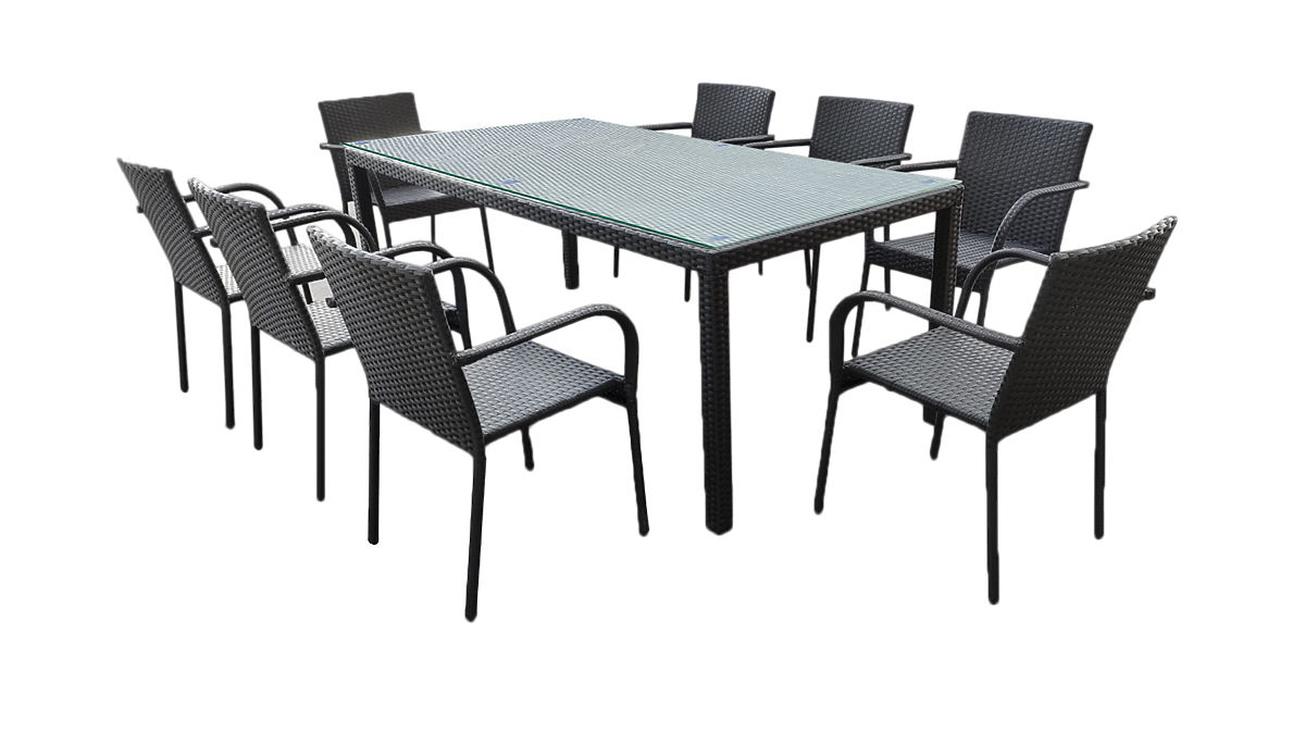 Velika jedilna garnitura iz tehnoratana (miza 200x100cm + 8 stolov) SOTTILE črna