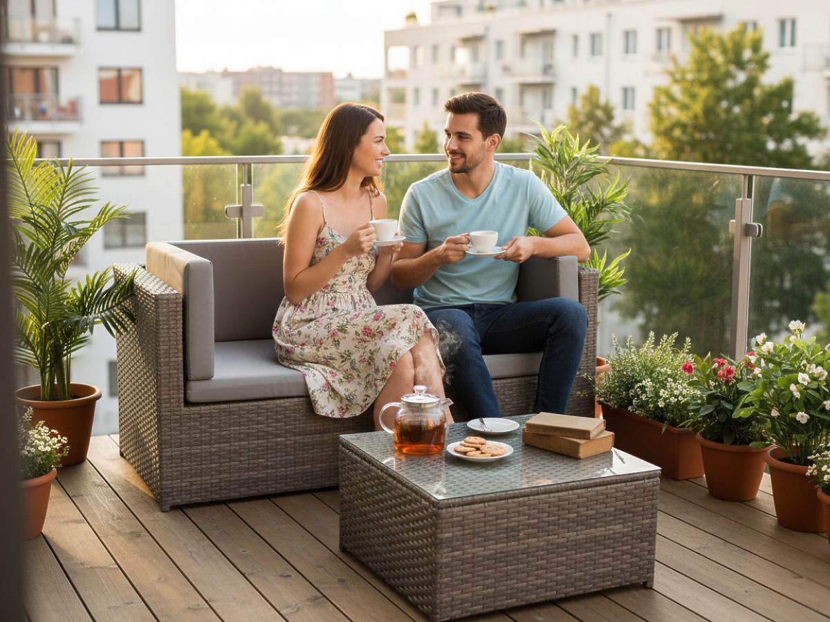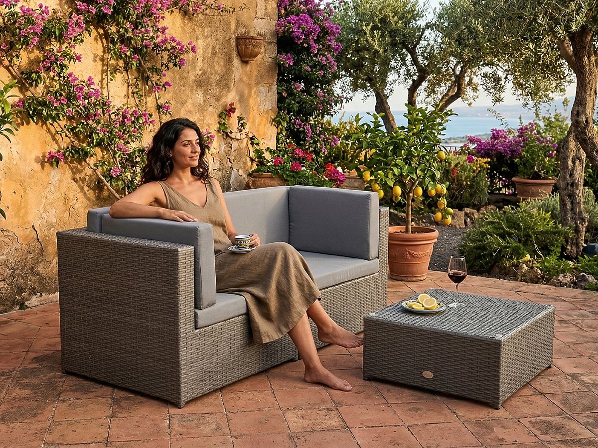 Majhen komplet za teraso iz tehnoratana (sofa + mizica) TINTO siva