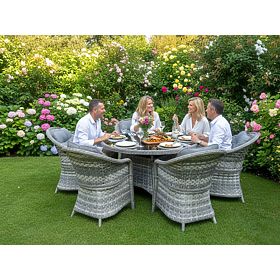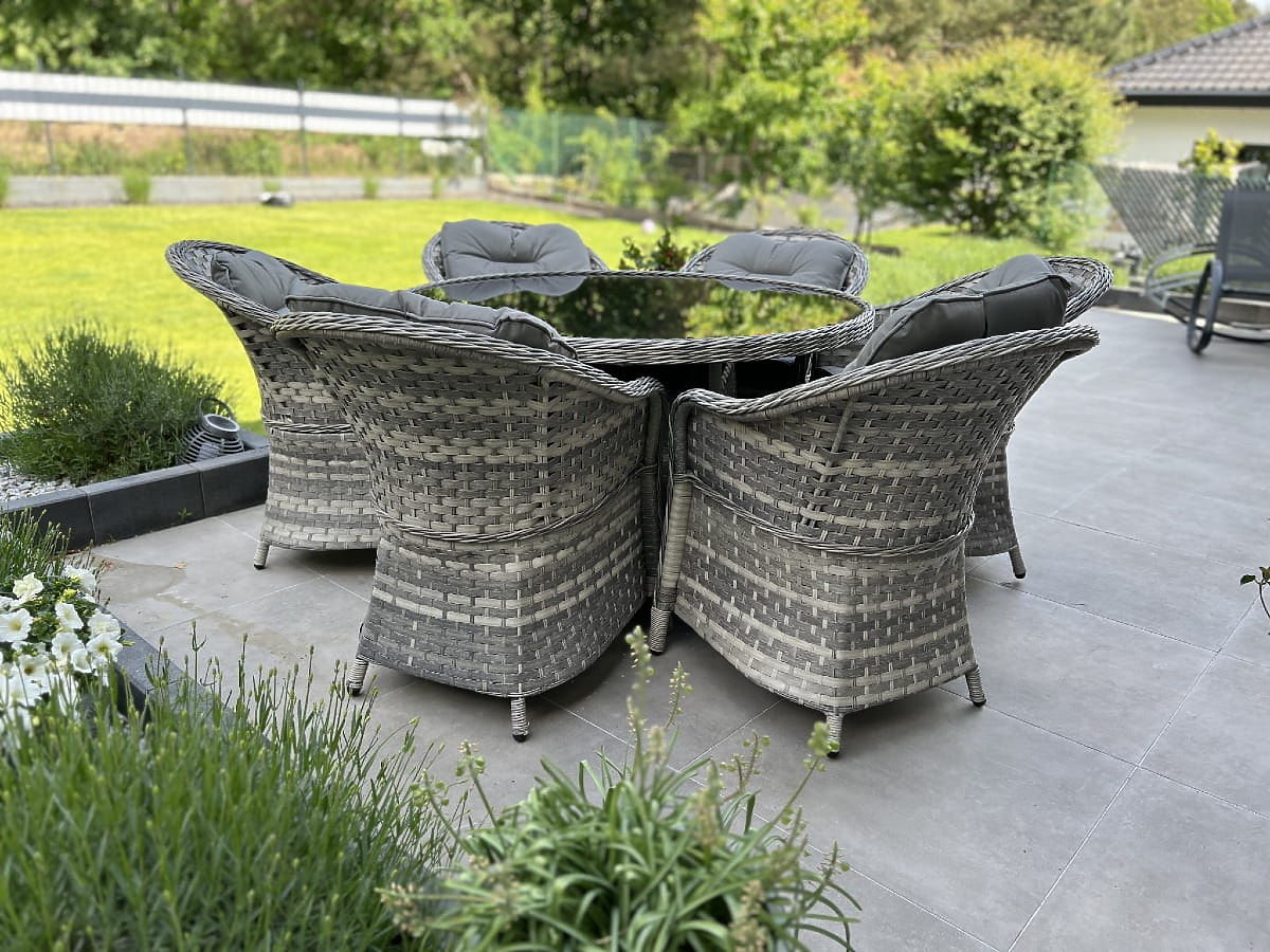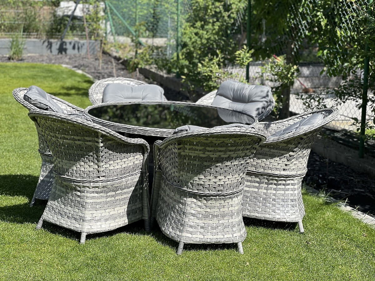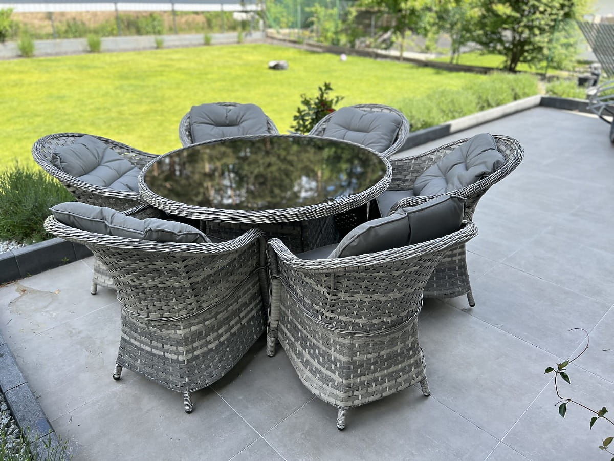 Jedilna garnitura MODERNO je esenca sodobnega dizajna in inovacij na področju zunanjega in notranjega pohištva. Ponuja edinstveno povezavo najnovejšega dizajna s funkcionalnostjo, ta garnitura postane srce vsakega prostora. Stoli in miza iz te kolekcije so izdelani iz visokokakovostnega sintetičnega ratana, kar zagotavlja popolno odpornost proti škodljivim vremenskim vplivom, kar zagotavlja njihovo dolgoživost in trajnost. Izbor materialov najvišje kakovosti naredi MODERNO GRANDE idealno za najzahtevnejše stranke, ki iščejo ne le lepoto, temveč tudi praktičnost in odpornost v svojem jedilnem pohištvu. Ta garnitura je idealna rešitev za tiste, ki želijo združiti eleganco z modernostjo v svojem življenjskem prostoru. Barva garniture: svetlo siva melirana, neenotna Barva blazin: temno siva Pletenje: ploski tehnoratan 17mm x 1,2mm in okrogli tehnoratan, gladka struktura Konstrukcija: jeklena Garnitura je sestavljena iz 7 elementov: 6 x stol: širina: 56 cm globina: 70 cm višina: 81 cm 1 x miza (s črno stekleno ploščo iz 5mm varnostnega stekla): premer: 120 cm višina: 74 cm Dodatne dimenzije: Višina sedeža stola: 38 cm + 5 cm blazina Višina naslonjala od sedeža: 50 cm Širina naslonov in naslonjala: 5 cm Širina in globina sedeža: 52 x 52 cm Garnitura je poslana na 1 paleti dimenzij 145x125x210 cm, teža 90 kg Blazine v temno sivi barvi za sedeže vključene v ceno garniture (6 kosov) Vse imajo snemljive prevleke na zadrgo, izdelane iz zunanjega materiala (100% poliester), ki jih je mogoče prati pri nizkih temperaturah. Prevleke za blazine so izdelane iz visokokakovostne tkanine, prevlečene s teflonom, ki jih ščiti pred vlago. Polnilo blazin je izdelano iz visokokakovostne oblazinjene pene (srednje trda - T25), ki preprečuje deformacije. Debelina blazin: 5 cm. Možnost šivanja blazin po naročilu za to garnituro: https://www.bg-meble.pl/pl/p/Usluga-Krawiecka-Poduszki-Na-Zamowienie-/742 Možnost šivanja prevlek za blazine po naročilu za to garnituro: https://www.bg-meble.pl/pl/p/Usluga-Krawiecka-Poszewki-Na-Zamowienie/743 Za še daljše ohranjanje nespremenjenega videza pohištva priporočamo nakup zaščitnega pokrova. Pokrov v temno sivi barvi je enodelen in ima spodaj zatezno vrvico. Vsi pokrovi so šivani po naročilu in čas izvedbe je približno 14 delovnih dni. Predstavljajte si vrtno pohištvo, ki presega vaša pričakovanja v vseh pogledih – od odpornosti do dizajna. Tukaj je BELLO GIARDINO, kjer ima vsak detajl pomen in luksuz se sreča s funkcionalnostjo: Nespremenljiva kakovost: Naš sintetični ratan je zagotovilo, da bo pohištvo zdržalo leta, ne da bi izgubilo na lepoti ali trajnosti. Odpornost na vreme: Naše pohištvo se sooča z najtežjimi vremenskimi pogoji, od žgočega sonca do mrzlih zim, ostaja vedno lepo. Luksuzno udobje: Močne, mehke blazine vabijo k sprostitvi, ponujajo udobje, ki ga je težko najti drugje. Lahkost in odpornost: Aluminijasta konstrukcija združuje najboljše iz obeh svetov – je lahka, a izjemno stabilna. Dizajn, ki očara: Vsak element našega pohištva je bil zasnovan z mislijo na estetiko in funkcionalnost, da se prilega vsakemu okolju. Ne glede na to, ali ste ljubitelj minimalizma ali cenite bogate, elegantne aranžmaje, naše pohištvo bo izpolnilo vaša pričakovanja, presegajoč meje običajne funkcionalnosti in estetike. Zagotavljamo, da tudi najzahtevnejše stranke ne bodo mogle upreti udobju in slogu, ki ga ponuja BELLO GIARDINO. Naredite iz svojega vrta, terase ali balkona oazo sprostitve in elegance, ki ste jo vedno želeli imeti. Ne čakajte, odkrijte BELLO GIARDINO še danes in spremenite svoje zunanje prostore v kraje, o katerih ste vedno sanjali.