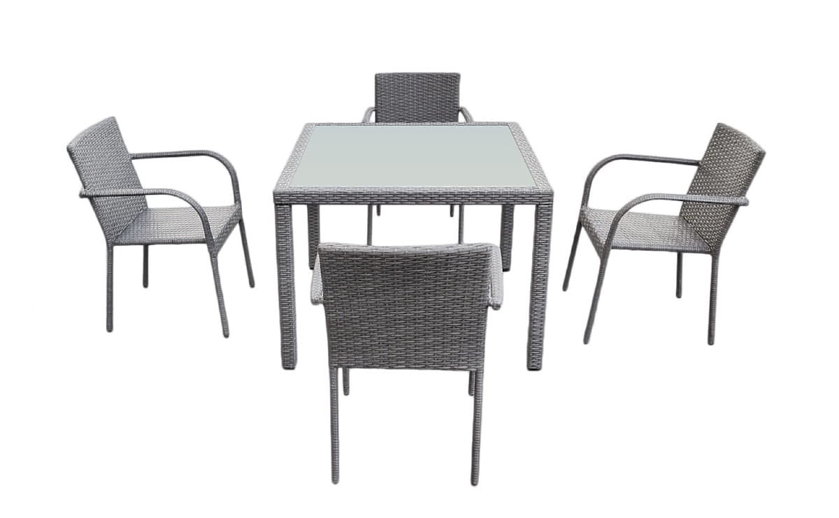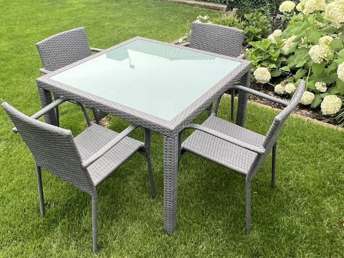 Jedilni set iz tehnoratana (miza 100x100 + 4 stoli) AVVICENTE siva