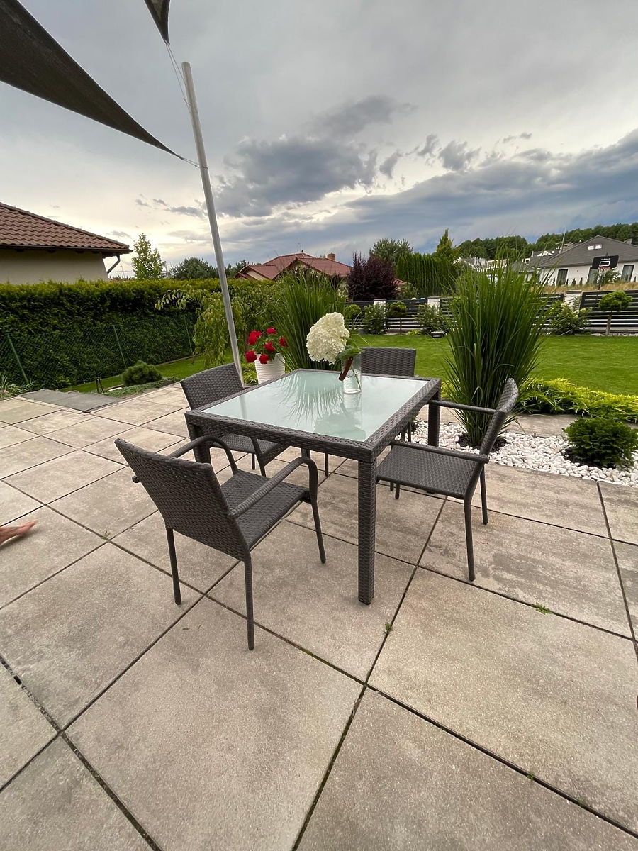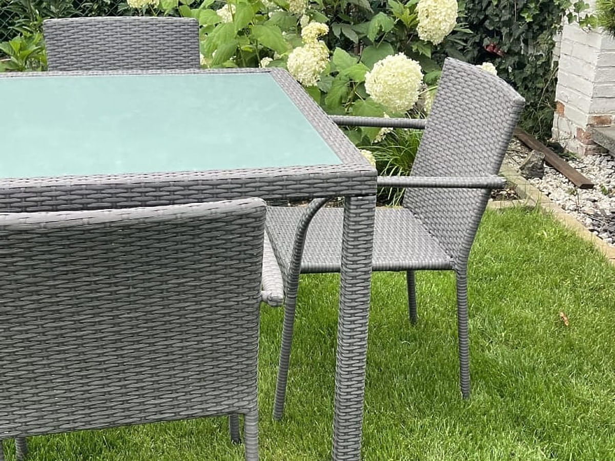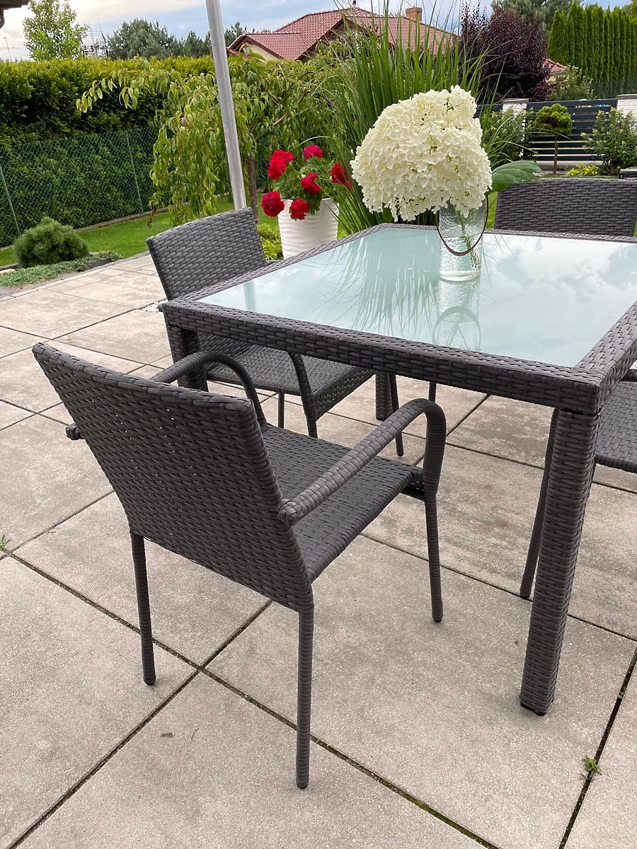 Vrtno pohištvo AVVICENTE je kvintesenca modernega dizajna in inovacij, zasnovano z mislijo na najzahtevnejše uporabnike. Jedilni set je izdelan iz najkakovostnejšega tehnoratana, ki ne zagotavlja le izjemne mehanske odpornosti, temveč tudi zaščito pred negativnimi učinki UV sevanja, kar omogoča ohranjanje prvotnega videza pohištva za dolgo časa. Zahvaljujoč lahki aluminijasti konstrukciji mize je tehnoratansko pohištvo ECCELLENTE izjemno praktično in enostavno prenosljivo, kar omogoča enostavno prilagajanje prostora osebnim preferencam za sprostitev v senci ali na soncu. Primerno za tiste, ki iščejo kombinacijo elegance, trajnosti in funkcionalnosti v svojem vrtu ali na terasi. Barva seta AVVICENTE: siva, brušena struktura. Pletenje: tehnoratan 7-8mm x 1,2mm. Konstrukcija pohištva: miza – aluminij, stoli – jeklo. Set je sestavljen iz 5 elementov: 1 x miza: dolžina: 100 cm, širina: 100 cm, višina: 74 cm, steklena, prozorna plošča iz 5mm varnostnega stekla, nameščena na tehnoratanskem pletenju. 4 x stoli: širina: 56 cm, globina: 50 cm, višina: 84 cm, višina od tal do sedeža: 44 cm, višina naslonjala od sedeža: 43 cm, širina sedeža: 40 cm, globina sedeža: 43 cm. Set je poslan na 1 paleti dimenzij 120x80x115 cm, teža 50 kg. Stoli so takoj uporabni po odstranitvi iz škatel. Stoli so zložljivi (možnost vstavljanja enega v drugega), kar olajša shranjevanje in pohištvo ne zavzame veliko prostora. Miza je namenjena enostavni, samostojni montaži po priloženih navodilih. Steklena plošča mize je pritrjena na silikonskih priseskih, ki jo ščitijo pred premikanjem. Tehnoratan je odporen na škodljive vplive vremenskih razmer, vendar za daljše ohranjanje nespremenjenega videza pohištva priporočamo nakup zaščitnega pokrova. Pokrov v temno sivi barvi je enodelen in ima na spodnji strani zatezno vrvico. Vsi pokrovi so šivani po meri in čas izvedbe je približno 14 delovnih dni. Možnost nakupa blazine za stol tukaj. Predstavljajte si vrtno pohištvo, ki presega vaša pričakovanja v vseh pogledih – od odpornosti do dizajna. To je BELLO GIARDINO, kjer ima vsak detajl pomen in se luksuz sreča s funkcionalnostjo: Neuničljiva kakovost: Naš sintetični ratan je zagotovilo, da bo pohištvo zdržalo leta, ne da bi izgubilo na lepoti ali trajnosti. Odpornost na vreme: Naše pohištvo se sooča z najtežjimi vremenskimi pogoji, od žgočega sonca do mrzlih zim, ostaja vedno lepo. Luksuzno udobje: Močne, mehke blazine vabijo k sprostitvi, ponujajo udobje, ki ga je težko najti drugje. Lahkost in odpornost: Aluminijasta konstrukcija združuje najboljše iz obeh svetov – je lahka, a izjemno stabilna. Dizajn, ki očara: Vsak element našega pohištva je bil zasnovan z mislijo na estetiko in funkcionalnost, da se prilega vsakemu okolju. Ne glede na to, ali ste ljubitelj minimalizma ali cenite bogate, elegantne aranžmaje, naše pohištvo bo izpolnilo vaša pričakovanja, presegajoč meje običajne funkcionalnosti in estetike. Zagotavljamo, da tudi najzahtevnejši kupci ne bodo mogli upreti udobju in slogu, ki ga ponuja BELLO GIARDINO. Naredite iz svojega vrta, terase ali balkona oazo sprostitve in elegance, ki ste jo vedno želeli imeti. Ne čakajte, odkrijte BELLO GIARDINO že danes in spremenite svoje zunanje prostore v kraje, o katerih ste vedno sanjali. Fotografije pohištva naših strank: