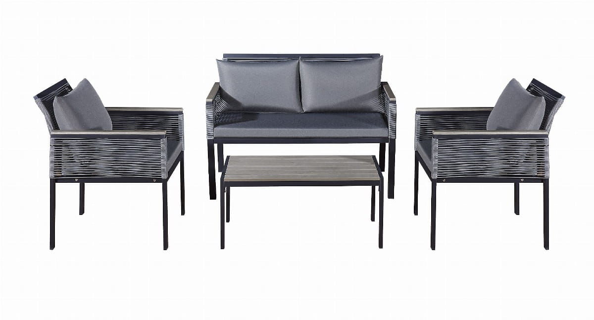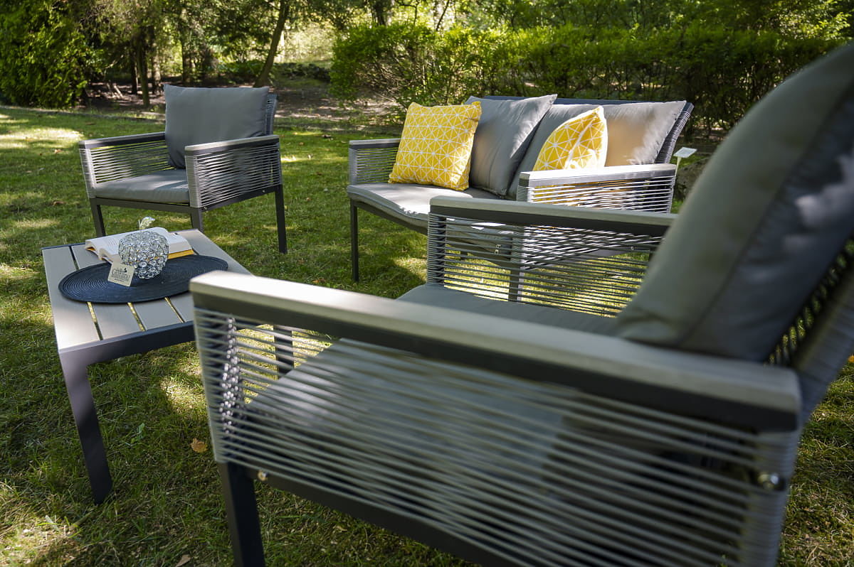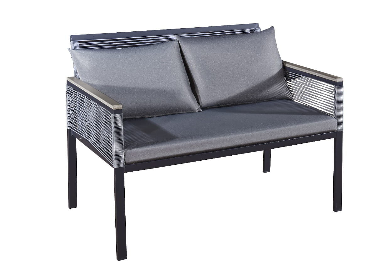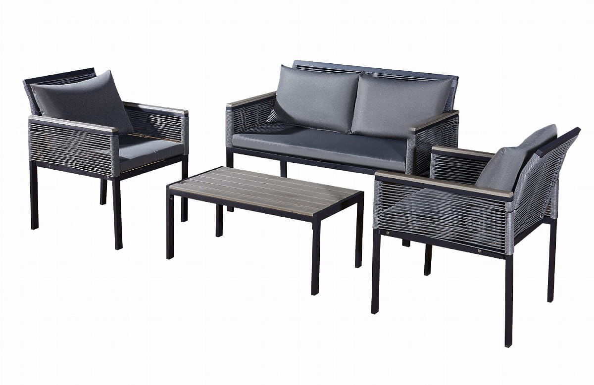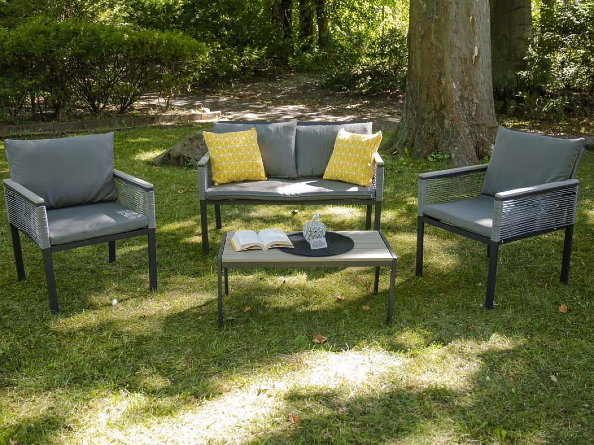 Aluminijasti komplet vrtnega pohištva (2 x stol, kavč + miza) CORTO okrogli sivi tehnoratan