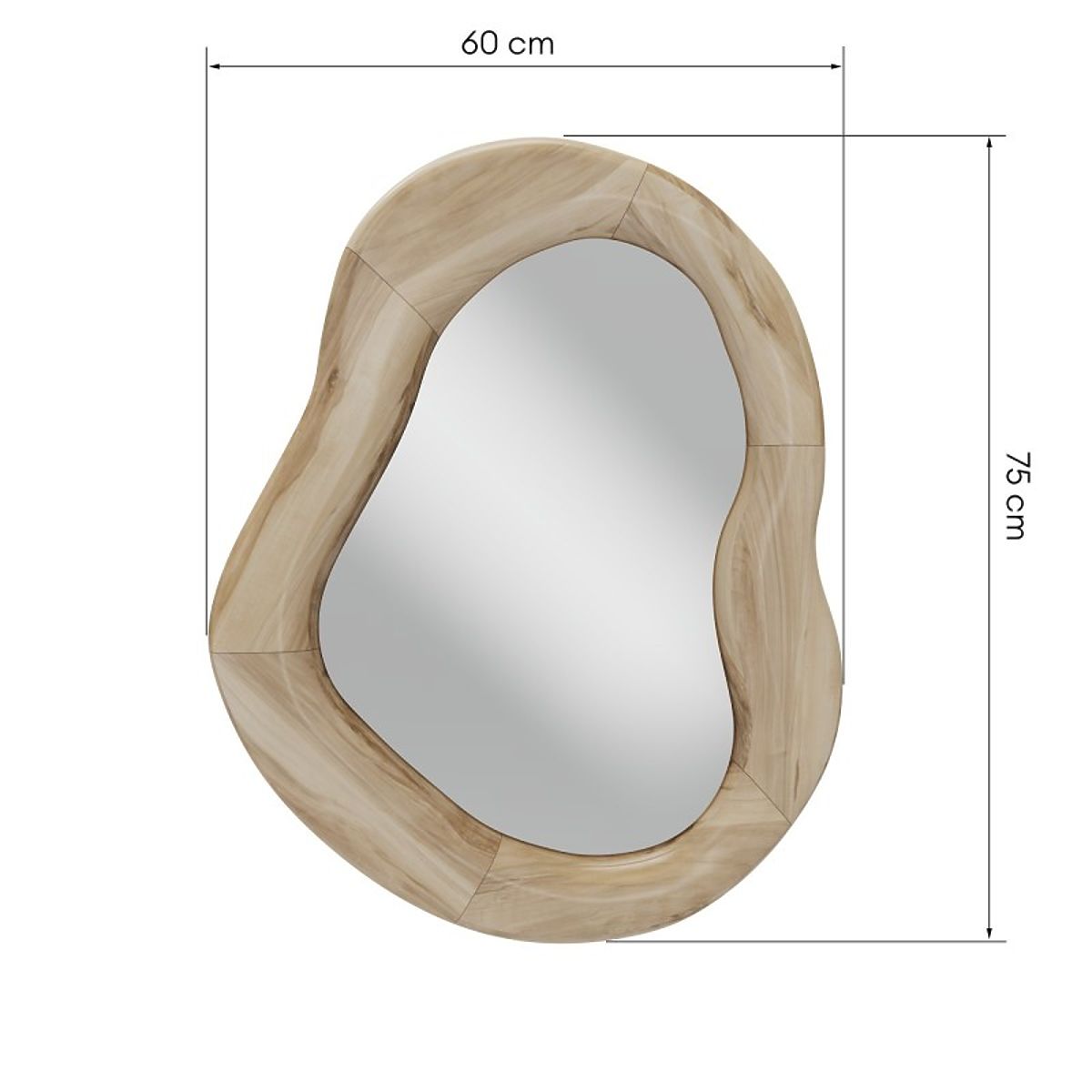 Lukahome.si » Okrasitev / Ogledala / Viseče ogledalo v lesenem okvirju Lia 75x60 cm, organska oblika, nepravilna oblika, naravno