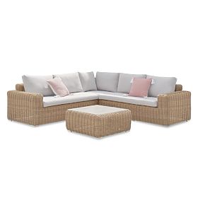 Kotna sedežna garnitura Sandy iz tehnoratana z bež blazinami. .. več