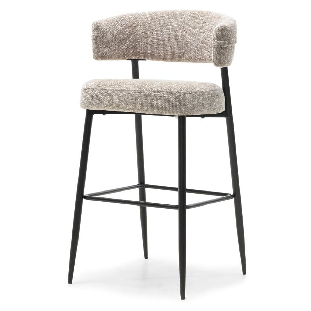 Barski stol Rosario predstavlja eleganco in udobje v modernem slogu. Opremljen je z zaobljenim naslonom in sedežem, napolnjenim s peno, kar zagotavlja udobje tudi pri daljšem sedenju. Prevleka iz mehke tkanine v bež barvi daje notranjosti prijetnost.