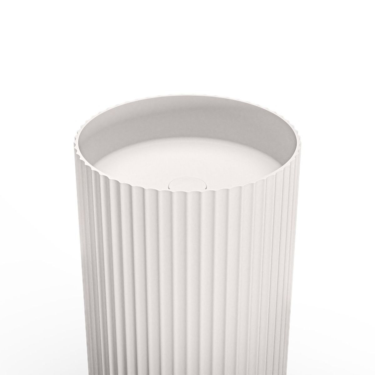 Samostoječi umivalnik z rebrasto površino in minimalističnim dizajnom. .. več