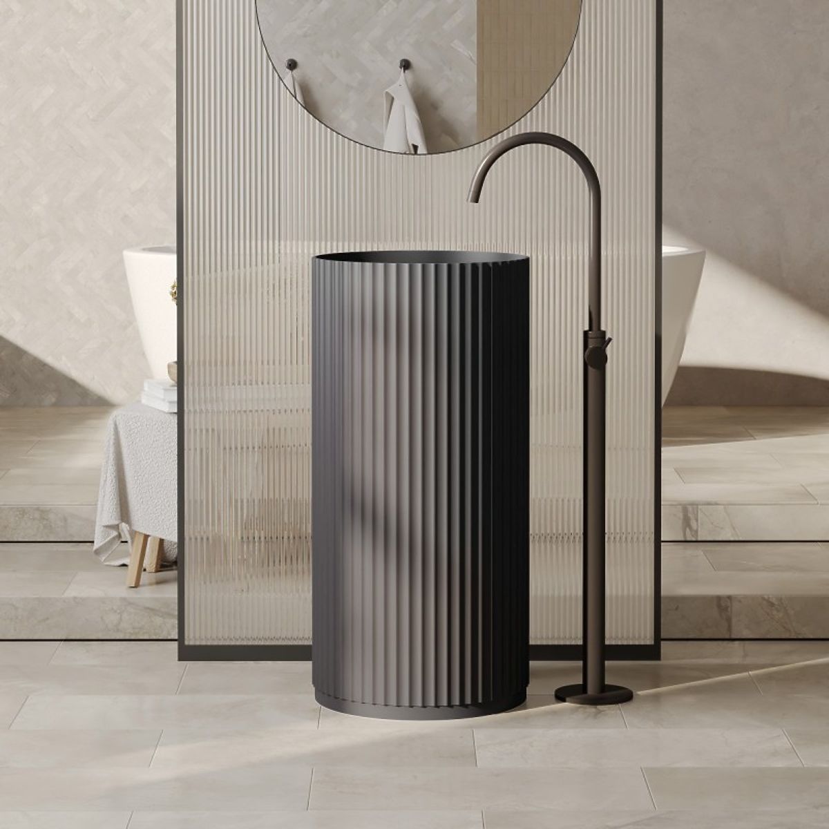 Samostoječi umivalnik Ciriola z rebrastim vzorcem in temno sivo barvo. .. več
