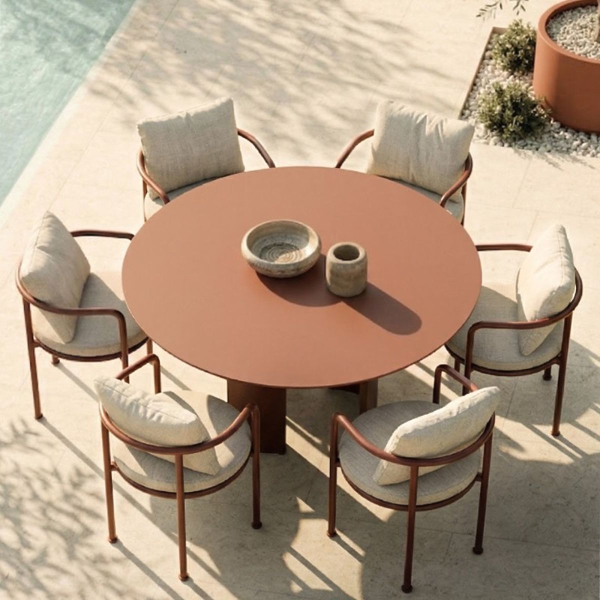 Okrogla aluminijasta miza Amarello v vinsko rjavi barvi. .. več