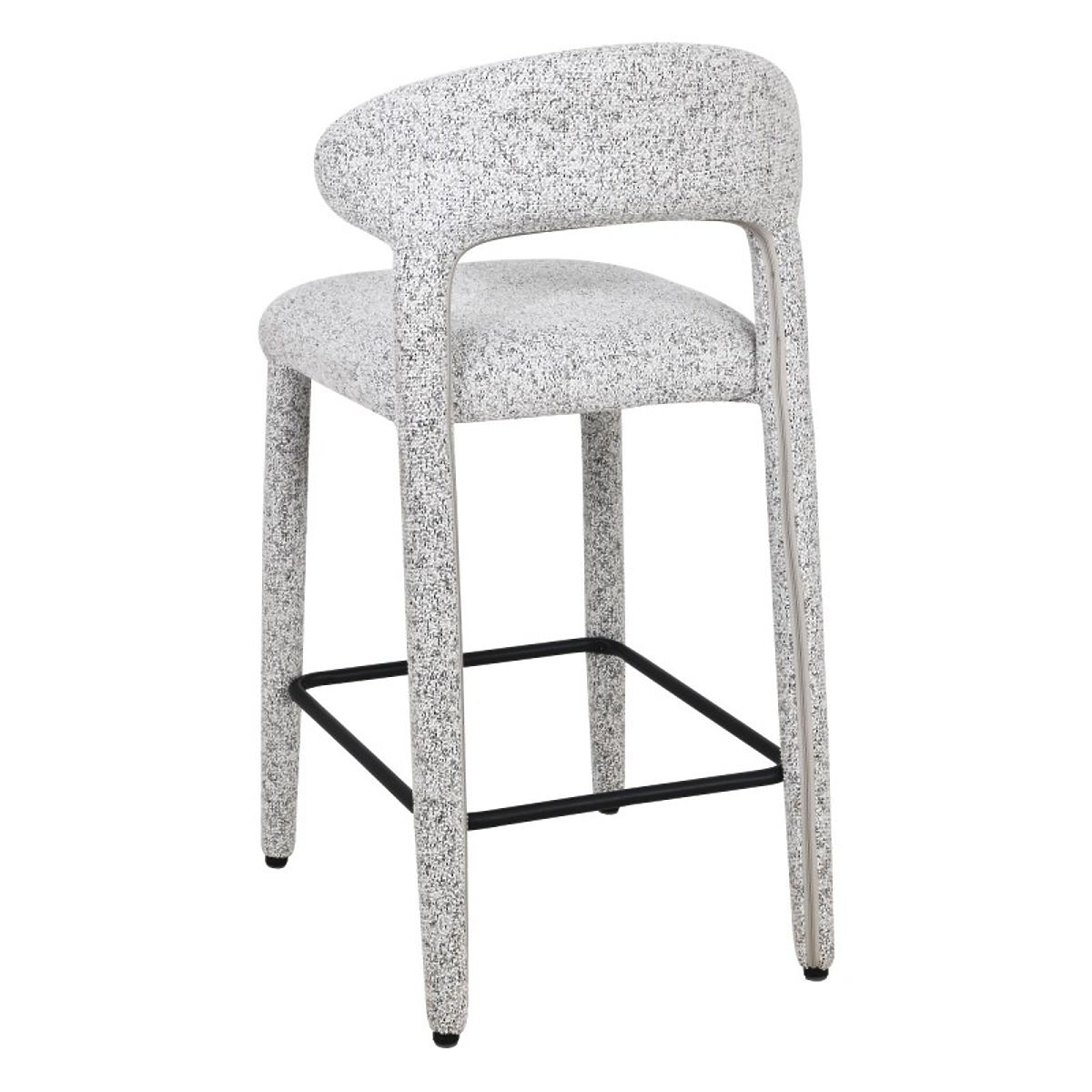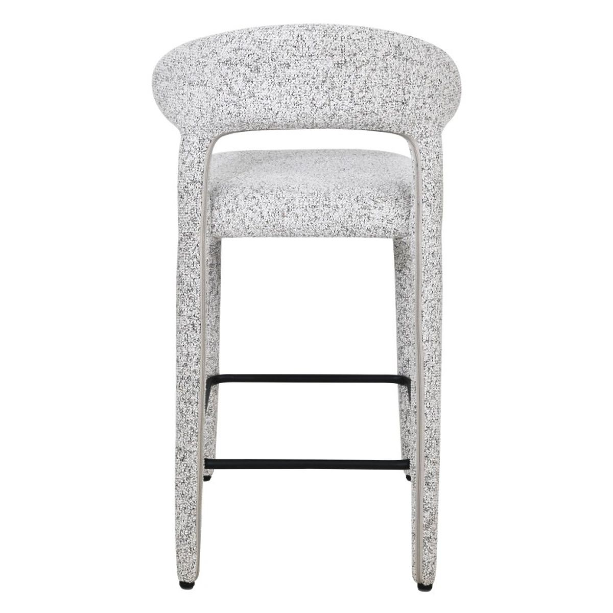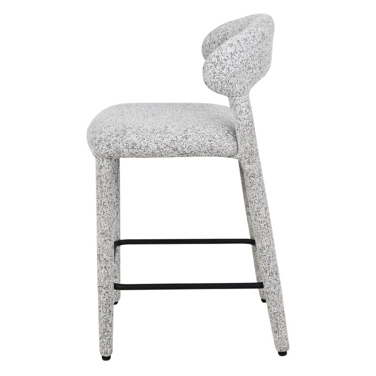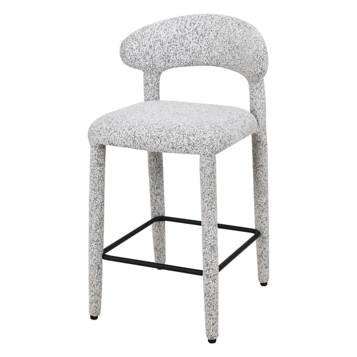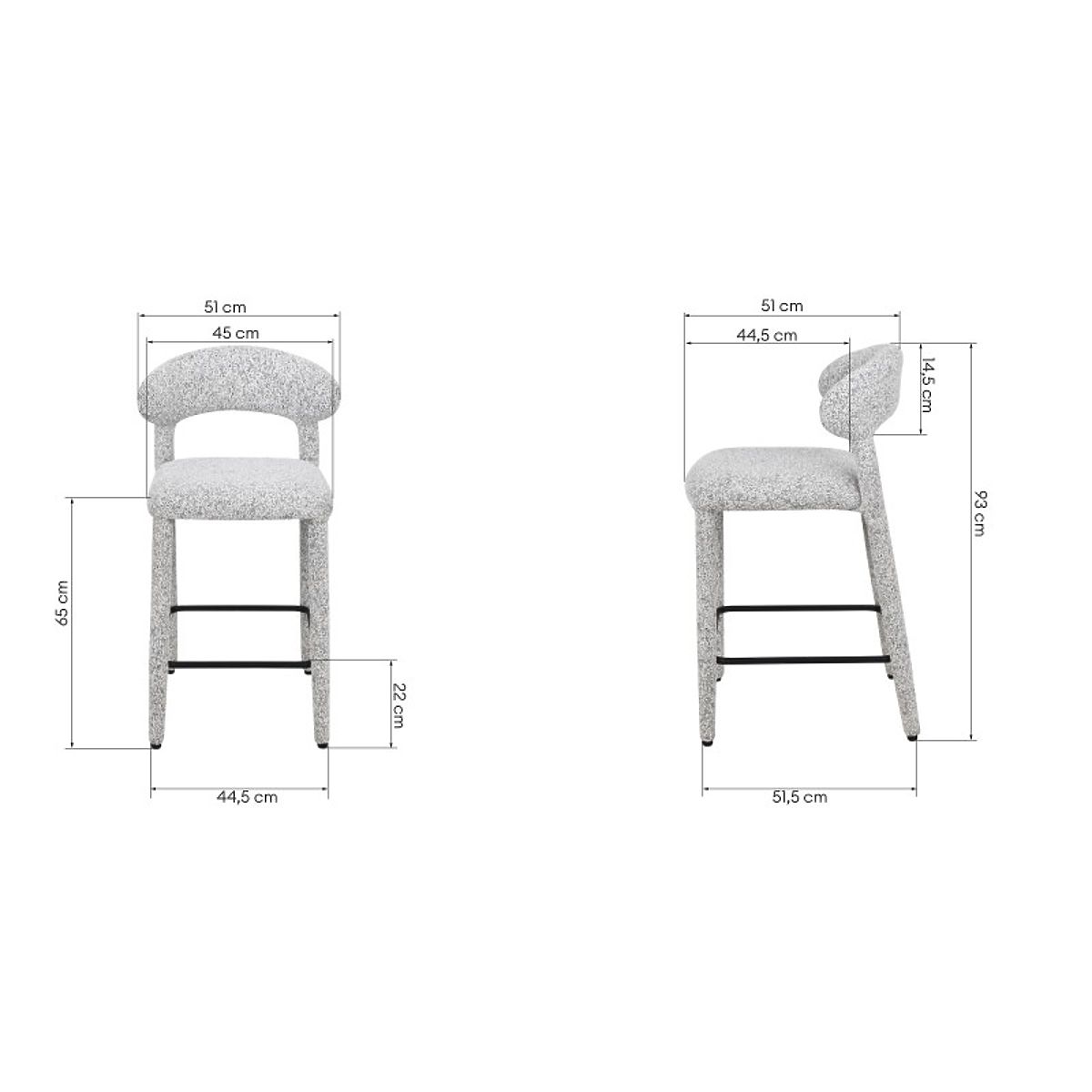 Barski stol Hiroki je stilska in funkcionalna izbira, ki se odlično prilega postavitvi ob kuhinjskem otoku, s čimer ustvarja udoben prostor za uživanje obrokov. Njegovo melirano oblazinjenje z večbarvnim vzorcem daje notranjosti prijeten in eleganten značaj.