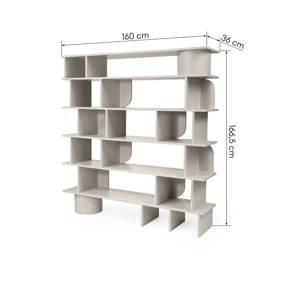 Polica Rangali je idealna kombinacija funkcionalnosti in izjemnega dizajna. Kašmirski odtenek in šest trdnih polic z dekorativnimi loki vam omogočajo estetsko ureditev vašega prostora in dodajo sodoben značaj.