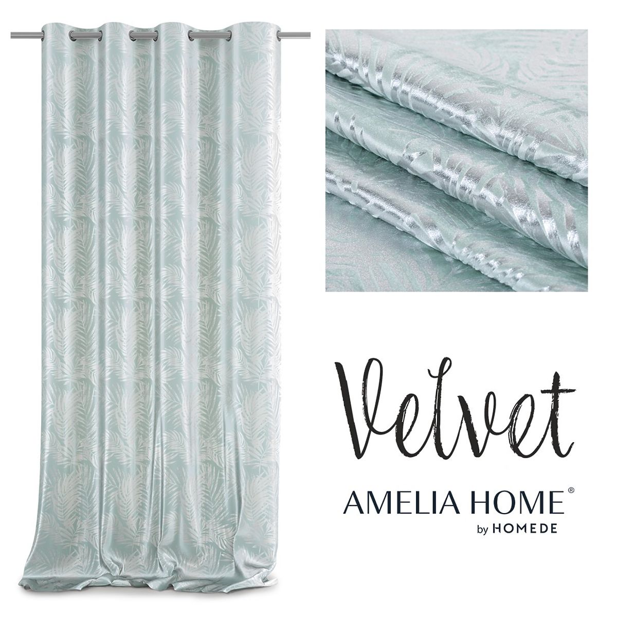 Lukahome.si » Zavese in zavese / Zavese / Zaves SILVERLEAVES mint barva tiskani stil glamour srebrne obročki žamet 140x245 AmeliaHom