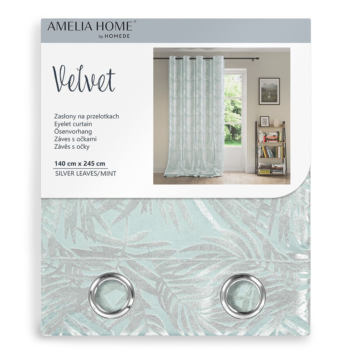 CURT/AH/VELVET/SILVERLEAVES/MINT/140X245