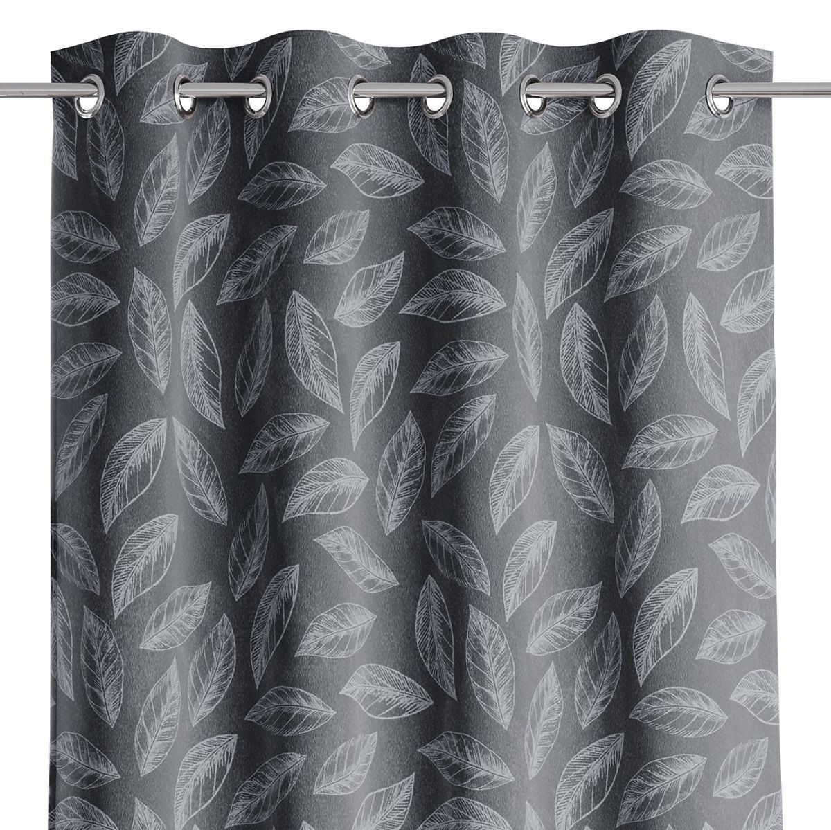 Grafitni zaves s tiskanim rastlinskim motivom in srebrnimi obročki. .. več