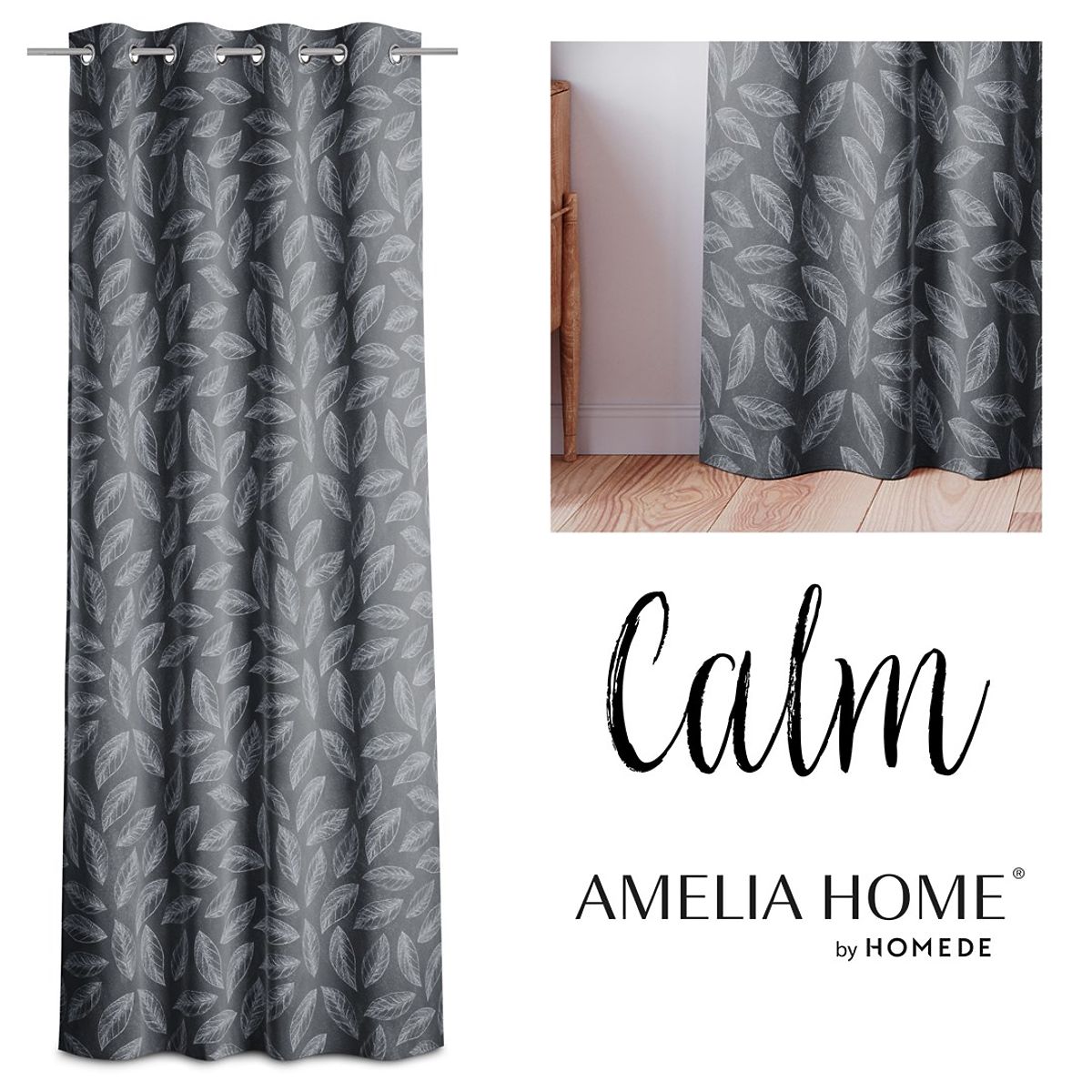Lukahome.si » Zavese in zavese / Zavese / Zaves CALM grafitna barva tiskani rastlinski motiv klasični stil srebrne kovinske obročke